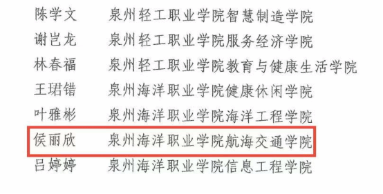 2023年9月被泉州海洋职业学院评为“优秀教育工作者”;