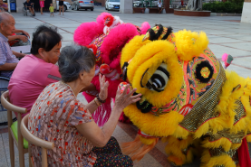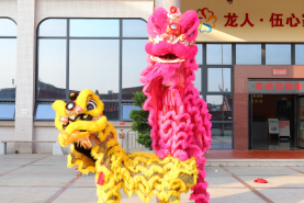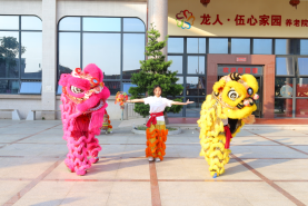 锣鼓声起,醒狮跃动。在龙人·伍心家园养老院的广场上,航海交通学院的学子们化身“狮者”,那粉红狮的娇俏灵动与金黄狮的威严飒爽,在阳光下绽放出别样的活力。