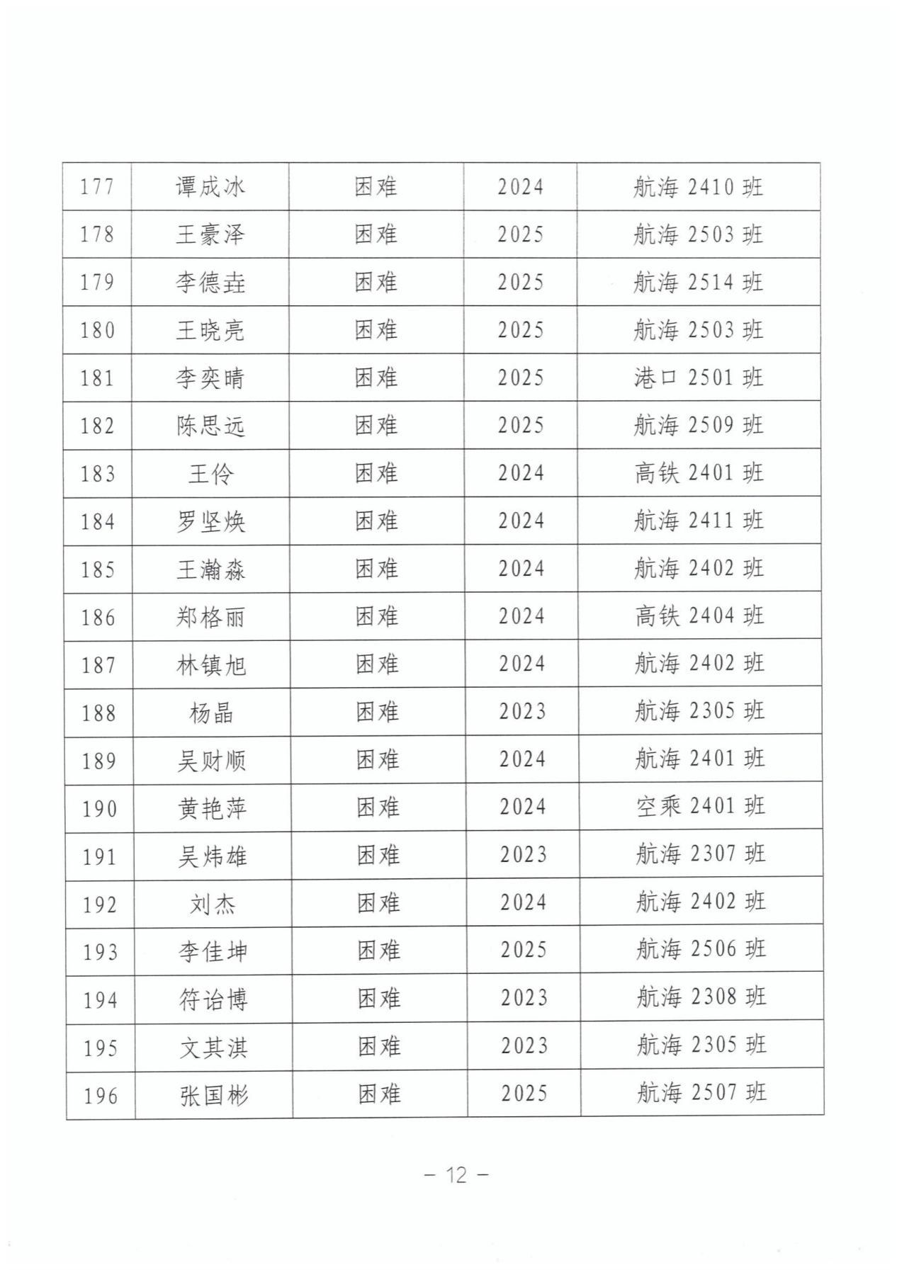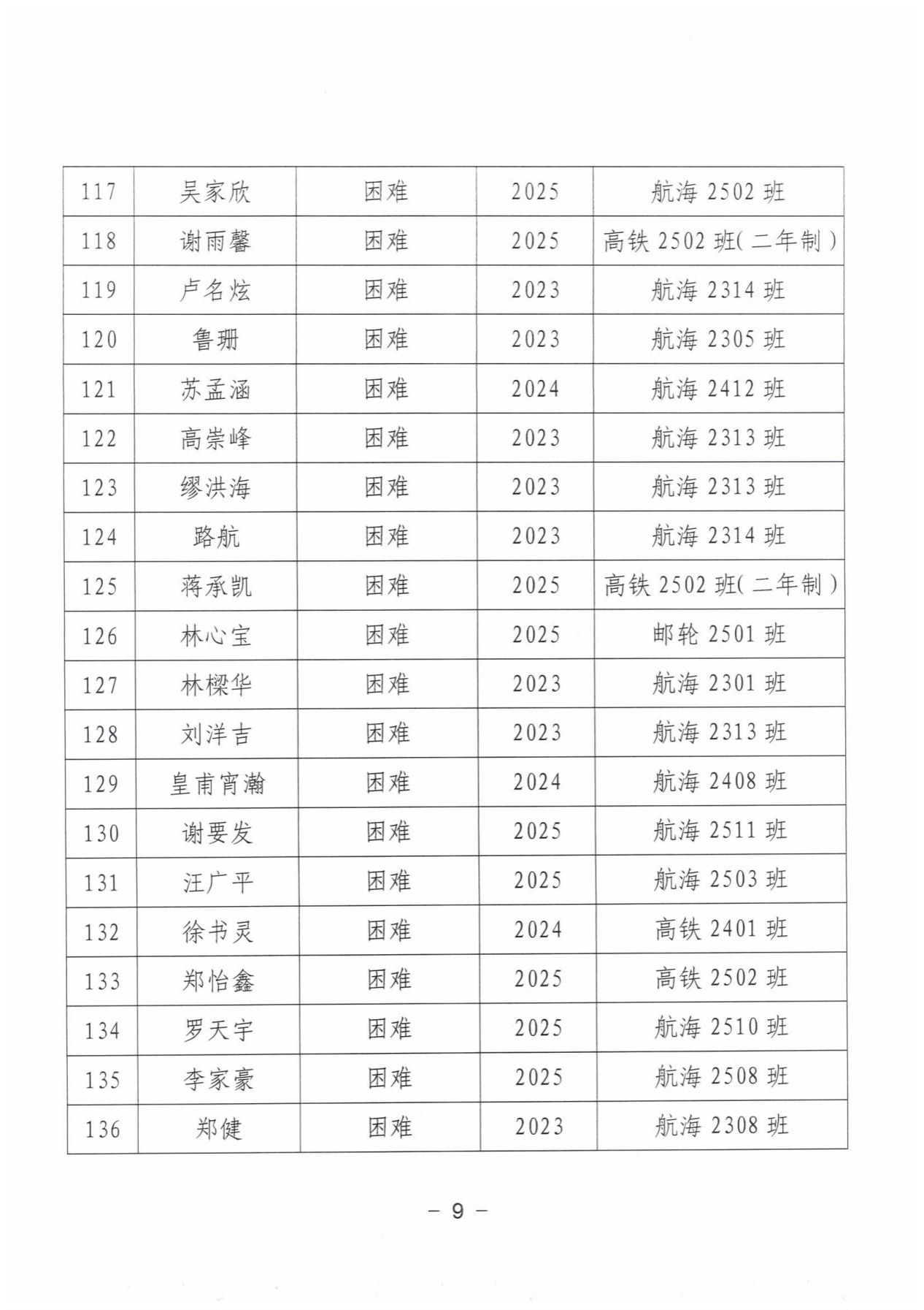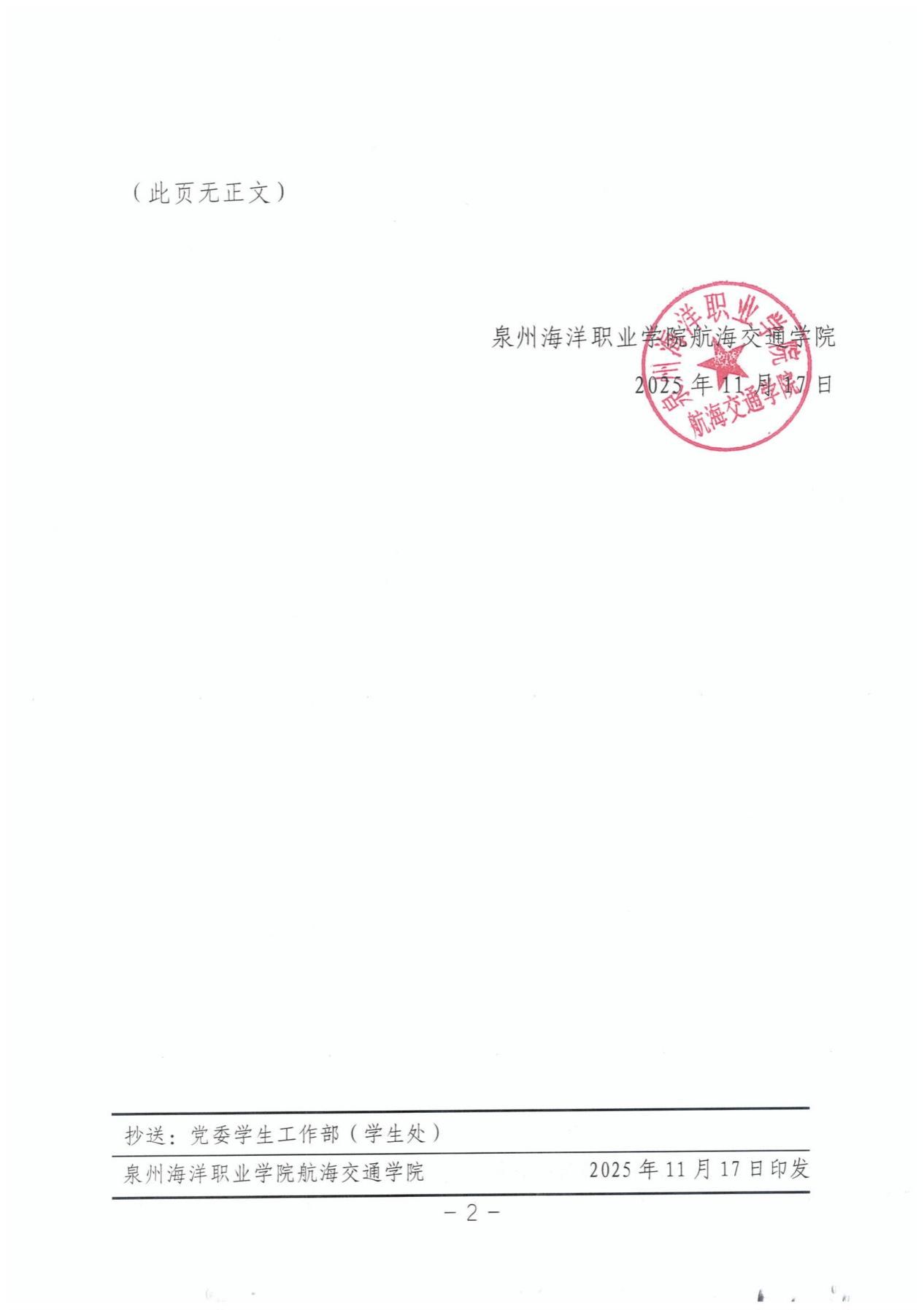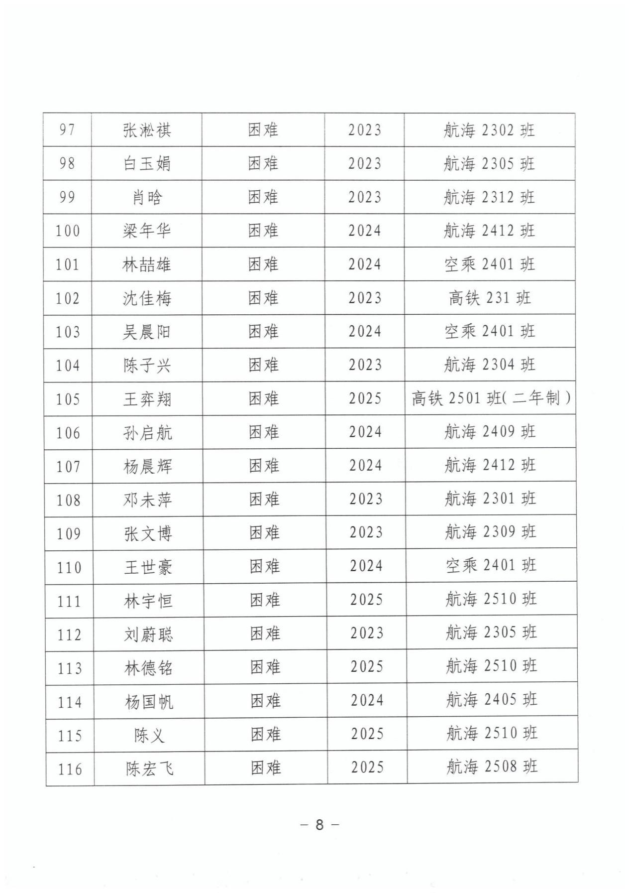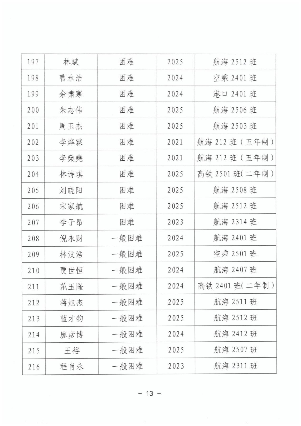 泉州海洋职业学院航海交通学院2025-2026学年第一学期家庭经济困难学生认定结果公示