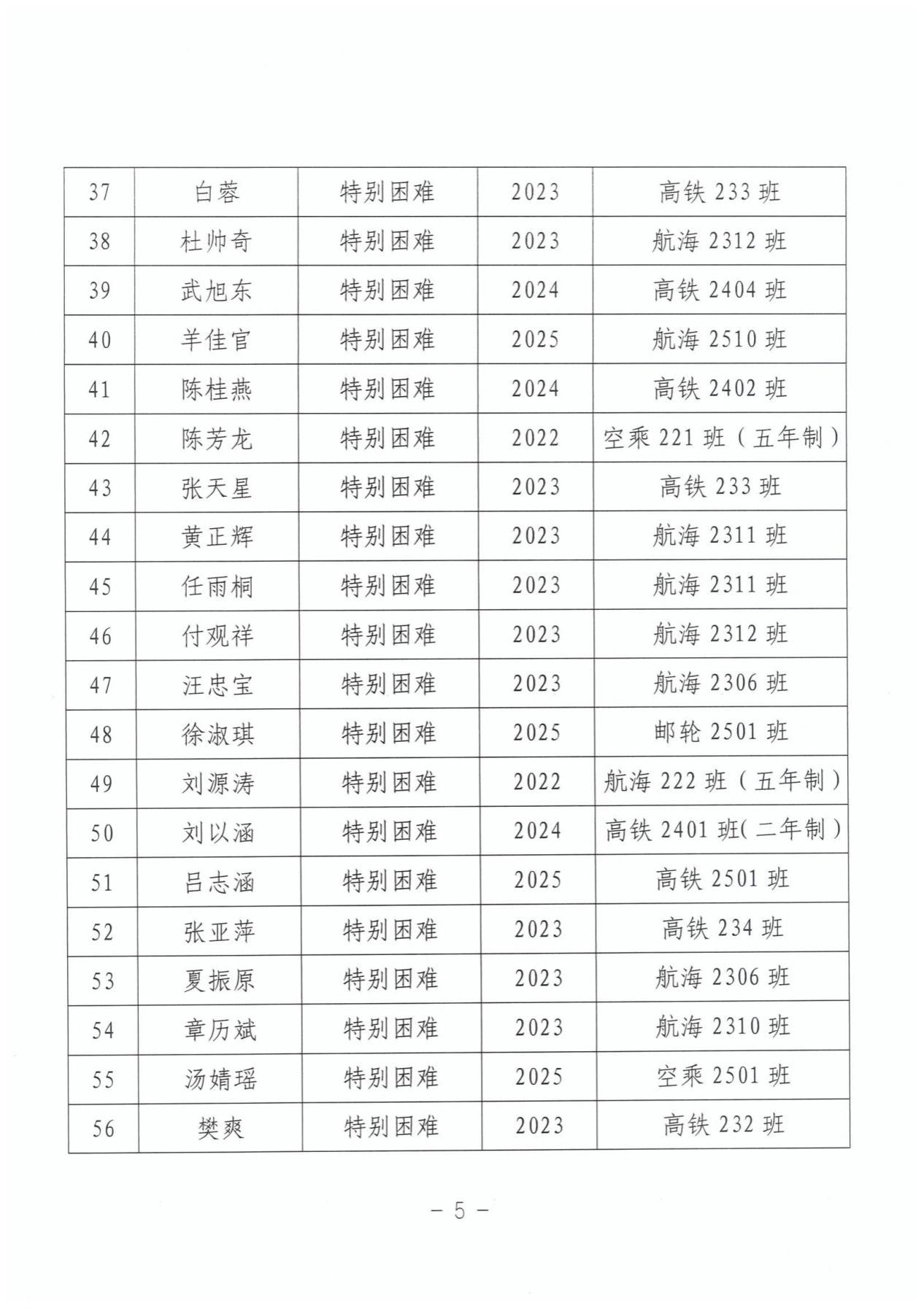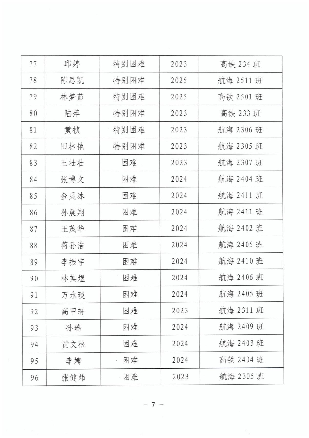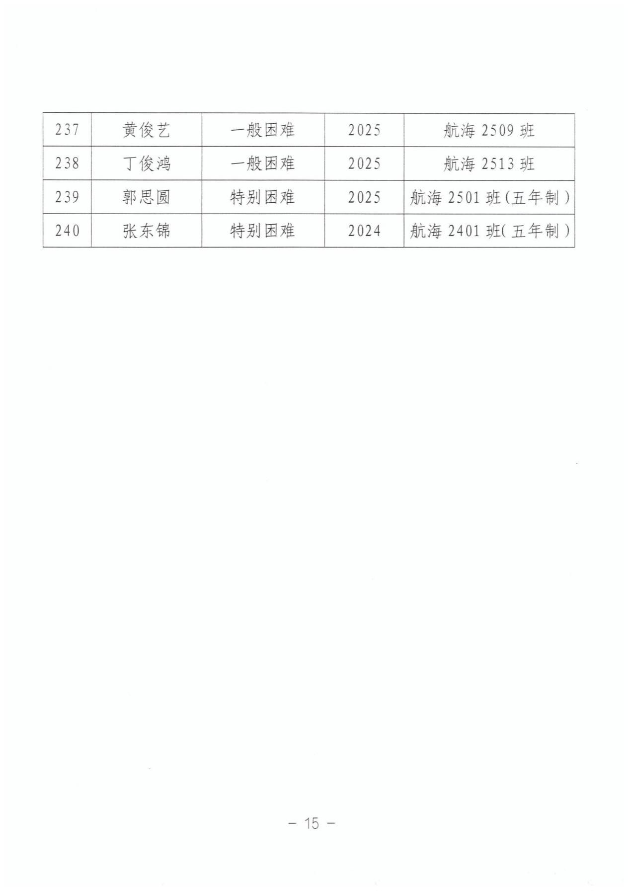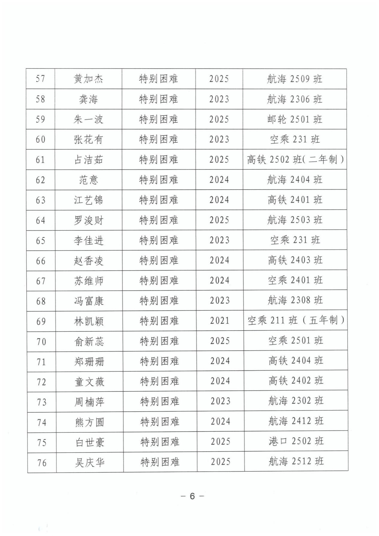 泉州海洋职业学院航海交通学院2025-2026学年第一学期家庭经济困难学生认定结果公示