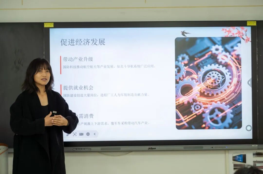 演讲中,选手们流畅的表达搭配精心制作的演示文稿,让每一段讲述都极具画面感。他们将国防主题诠释得生动鲜活,展现了泉海学子的创意与风采。