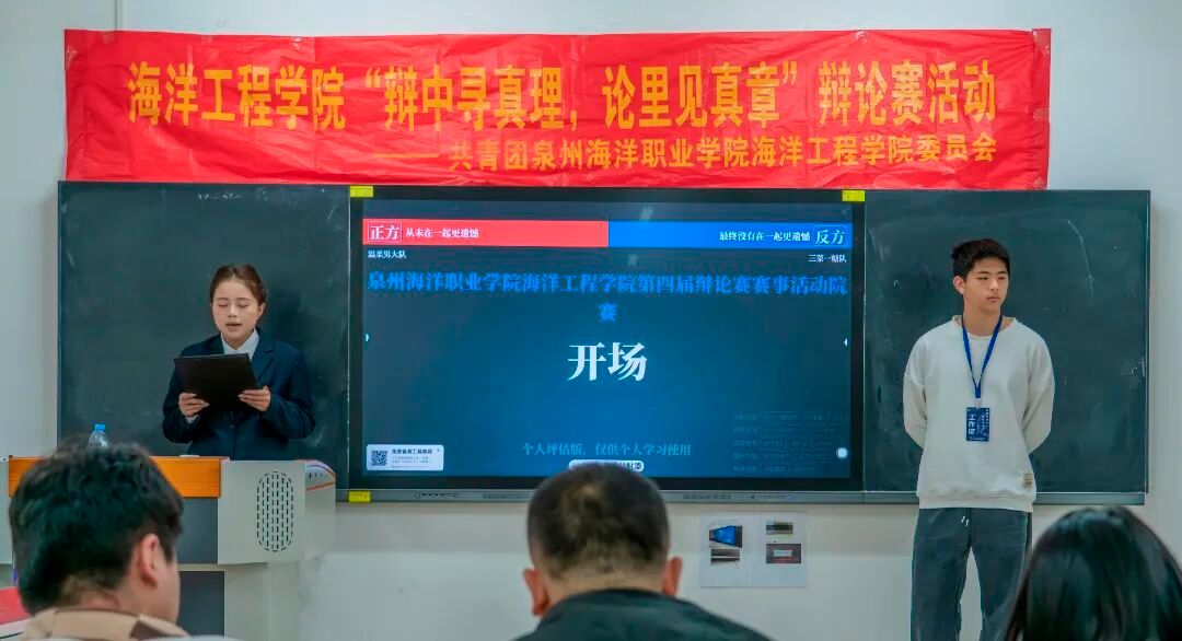 为持续丰富校园文化生活,让海工学子在思辨中探索情感与成长的内核,12月5日晚,海洋工程学院“辩中寻真理,论里见真章”辩论赛复赛在三号教学楼顺利开赛。本次比赛的辩题为“从未在一起更遗憾VS最终没有在一起更遗憾”。