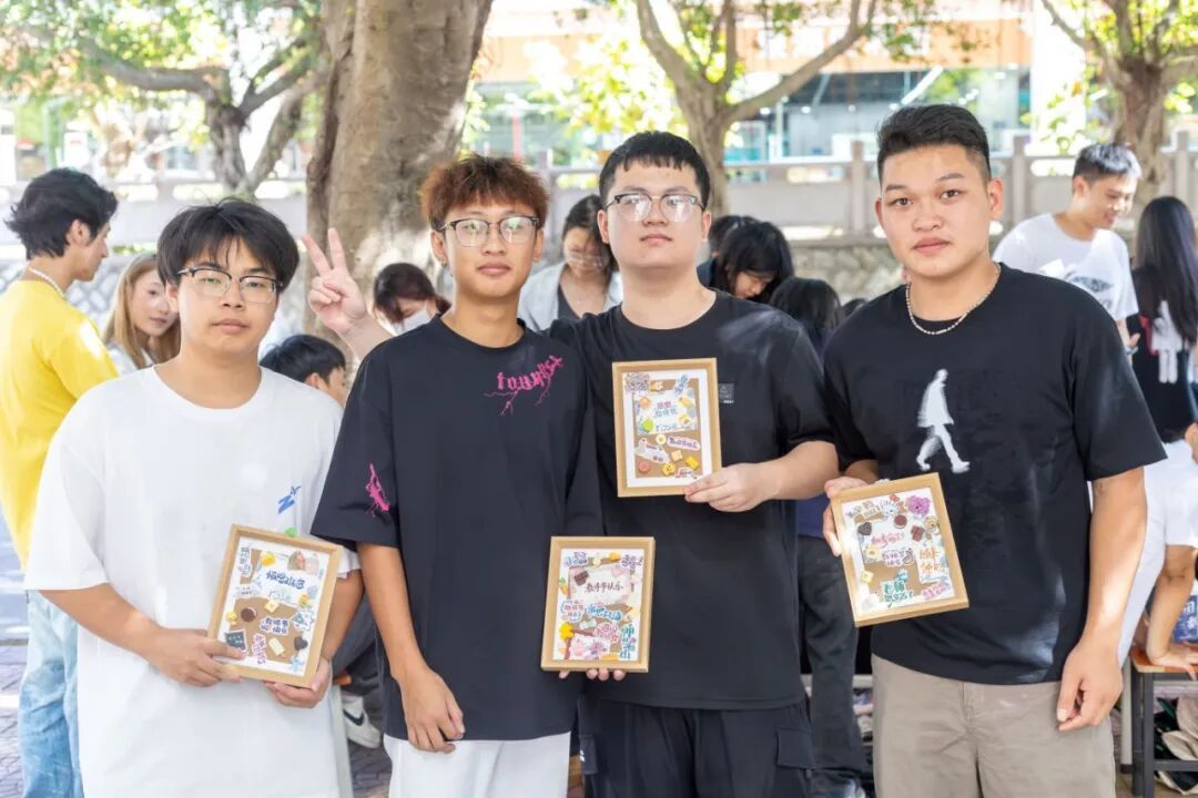 活动中,“手作藏心意”环节充满巧思。同学们化身“创意设计师”,手持马克笔、贴纸与DIY暖心装饰,在空白相框上手绘老师的Q版形象,还拼贴海洋元素贴纸呼应学院特色。随后,在明信片上写下真挚寄语,饱含着对老师的敬意与牵挂,最后封装进相框,成为独一无二的“心意礼物”。