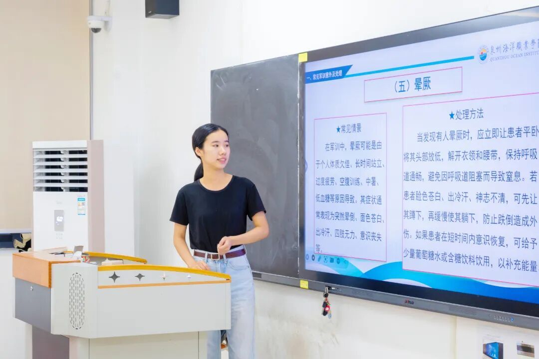 培训会伊始,柯老师首先为大家梳理了军训期间应急处理的三大核心内容。一是讲解了包括扭伤、拉伤在内的六类常见意外情形的具体表现与应对方式;二是明确了从现场评估、紧急处理到及时报告的完整应急流程,并说明了朋辈导师在各环节中的配合要点;三是提出了切实可行的预防措施,同时建议在训练间隙加强沟通、组织互动活动,以关注新生心理状态,助力大家平稳度过军训期、更快融入集体。