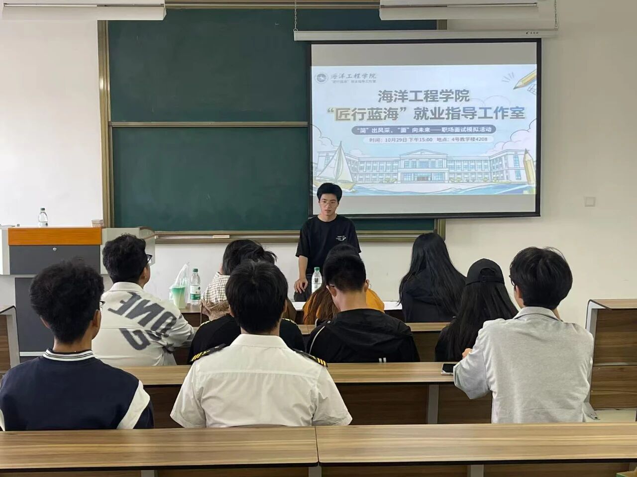 10月29日下午,4号教学楼内氛围热烈,"匠行蓝海"就业指导工作室举办的职场模拟面试第一期圆满落下帷幕!这场集实战体验与专业指导于一体的活动,吸引了众多学生。