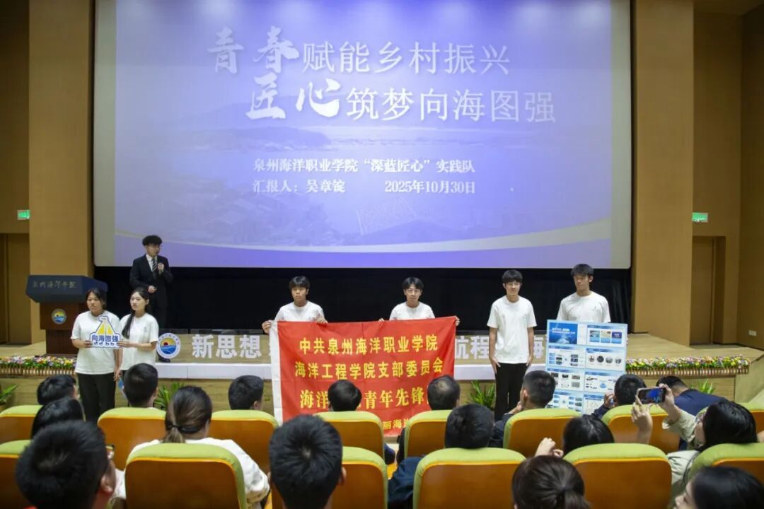10月30日下午,海洋工程学院“深蓝匠心”社会实践队开展的暑期“三下乡”项目在泉州海洋职业学院2025年暑期“三下乡”社会实践答辩暨成果展示的众多参评项目中脱颖而出,获评校级重点项目!