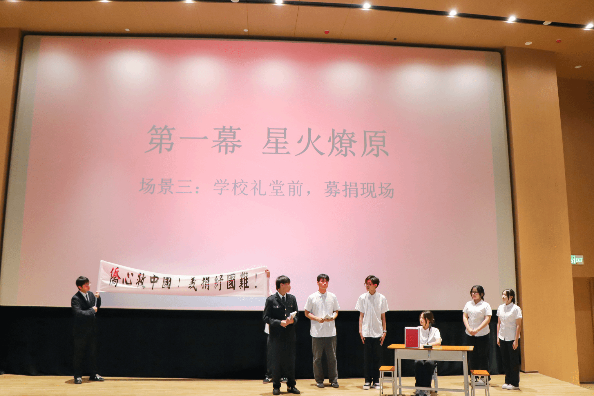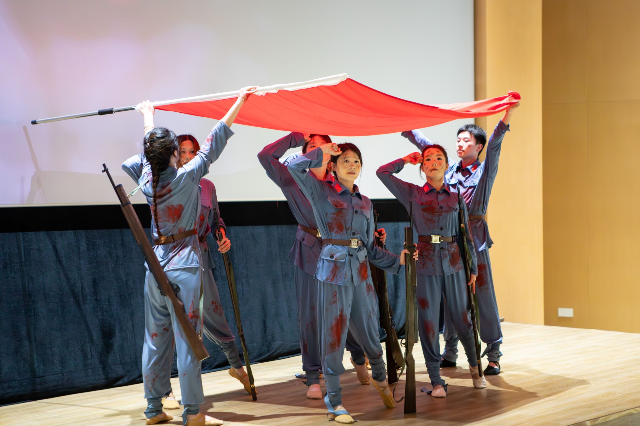 由王子涵老师、陈哲仁老师精心指导的话剧《明月照归心》则深情讲述了海外华侨心系故土、毁家纾难的感人故事。王丞伯文、郑陈滨玥等演员用真挚的表演诠释了“胜利的丰碑凝结着海外赤子心血”的深刻内涵。