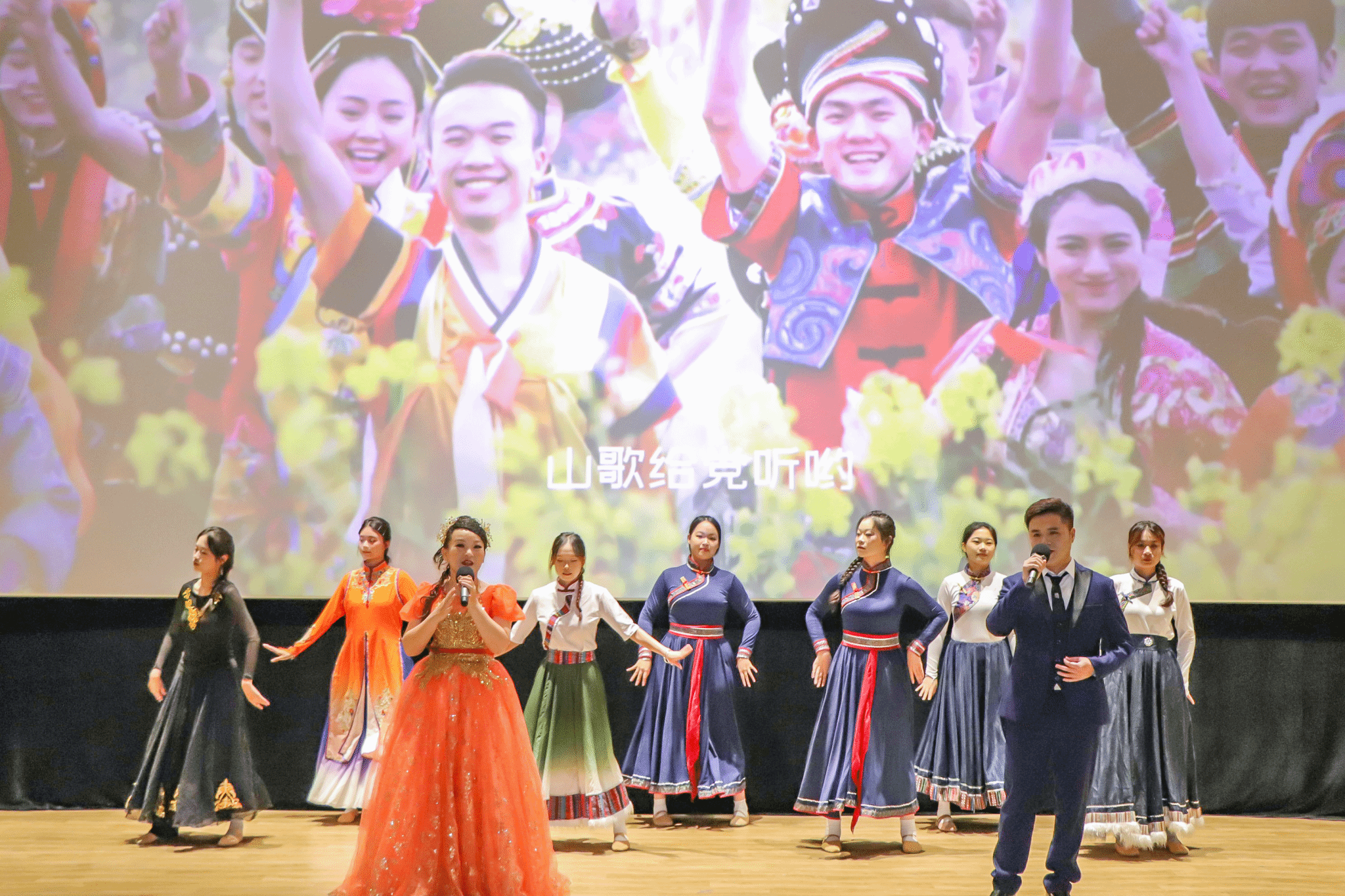 歌伴舞《再唱山歌给党听》中,赵静老师、刘顺老师的歌声与舞者的舞姿相得益彰,深情讴歌了中国共产党作为抗战中流砥柱的伟大历史功绩。