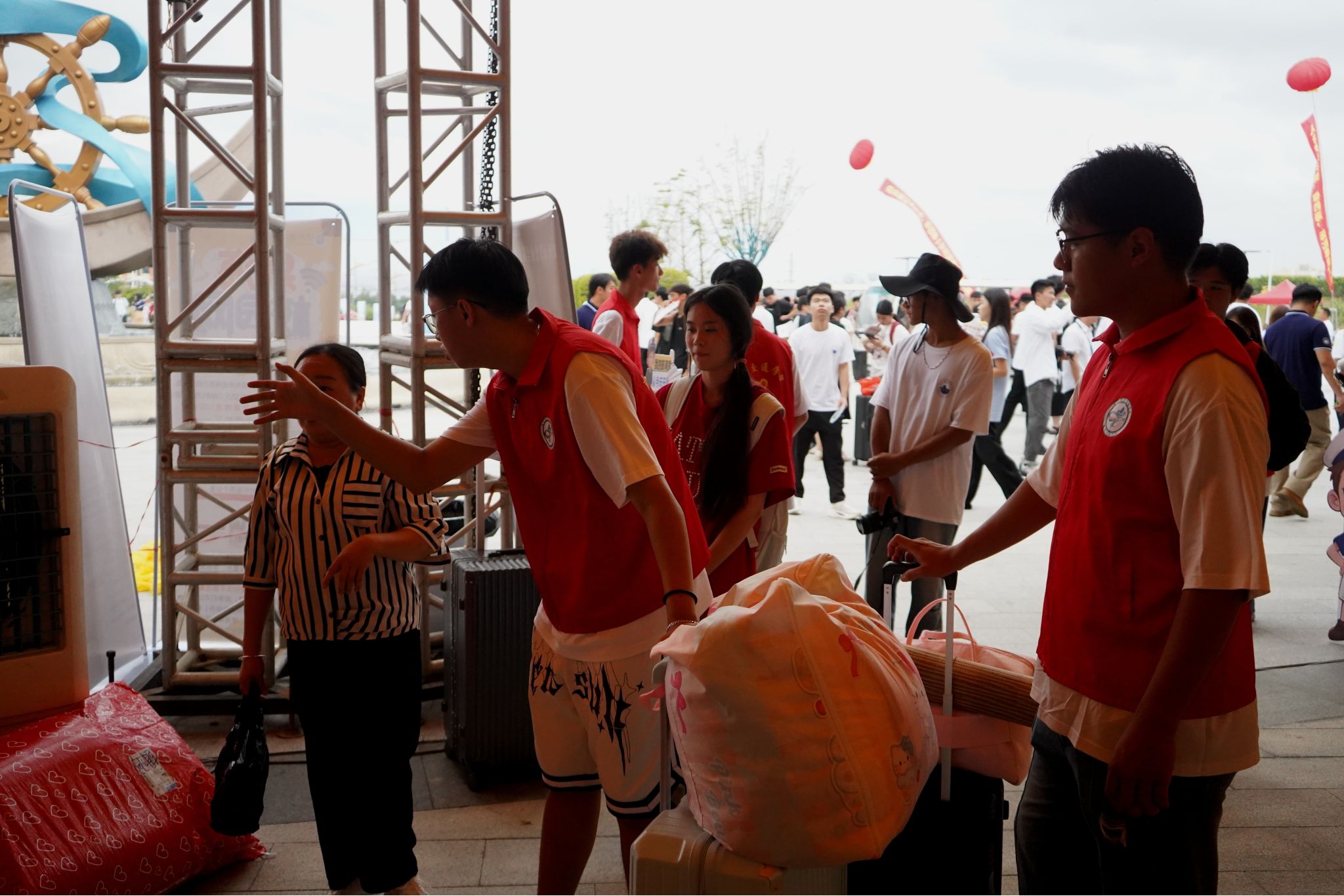 以新生报到为契机,充分发挥党员的先锋模范作用,校院两级同步设立“党员先锋岗”“党员服务站”,组建红色志愿服务队,提前布置现场、轮班值守宿舍,现场答疑引导、搬运行李、讲解流程,用一抹“党员红”点亮新生“第一盏引路灯”。
