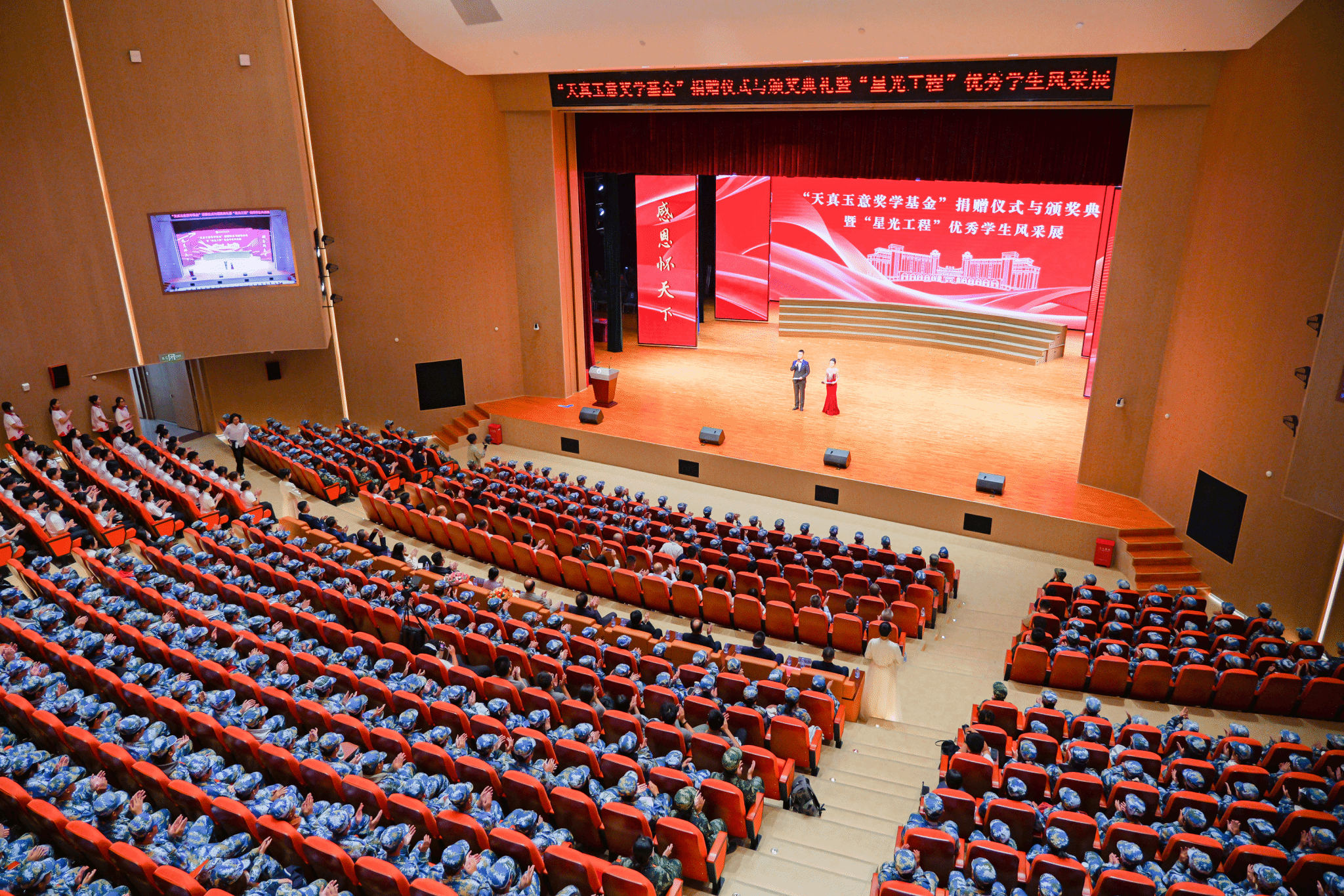 (新闻中心讯 党委宣传部报道)10月22日下午,“天真玉意奖学金”捐赠仪式与颁奖典礼暨“星光工程”优秀学生风采展于学校国际学术交流中心大礼堂举行。学校创始人、董事长蔡天真先生偕伉俪蔡玉意女士莅临现场,与董事会董事、校领导,各职能部门、二级学院负责人以及千余名师生代表和家长代表一道,共同见证了这场温情与鼓舞交织的仪式。
