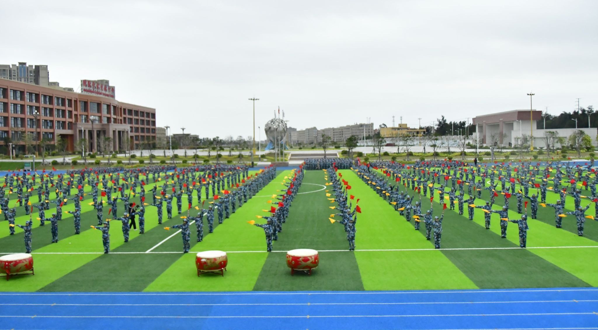 同学们动作刚劲有力,战术配合默契,特别是数字方阵和旗语方阵,以整齐划一的举牌和默契十足的挥旗传递着“向海图强,强国有我”的青春誓言,充分体现了学校“立足海洋,服务地方”的办学特色,展现了学子们未来投身海洋事业的决心与潜力。