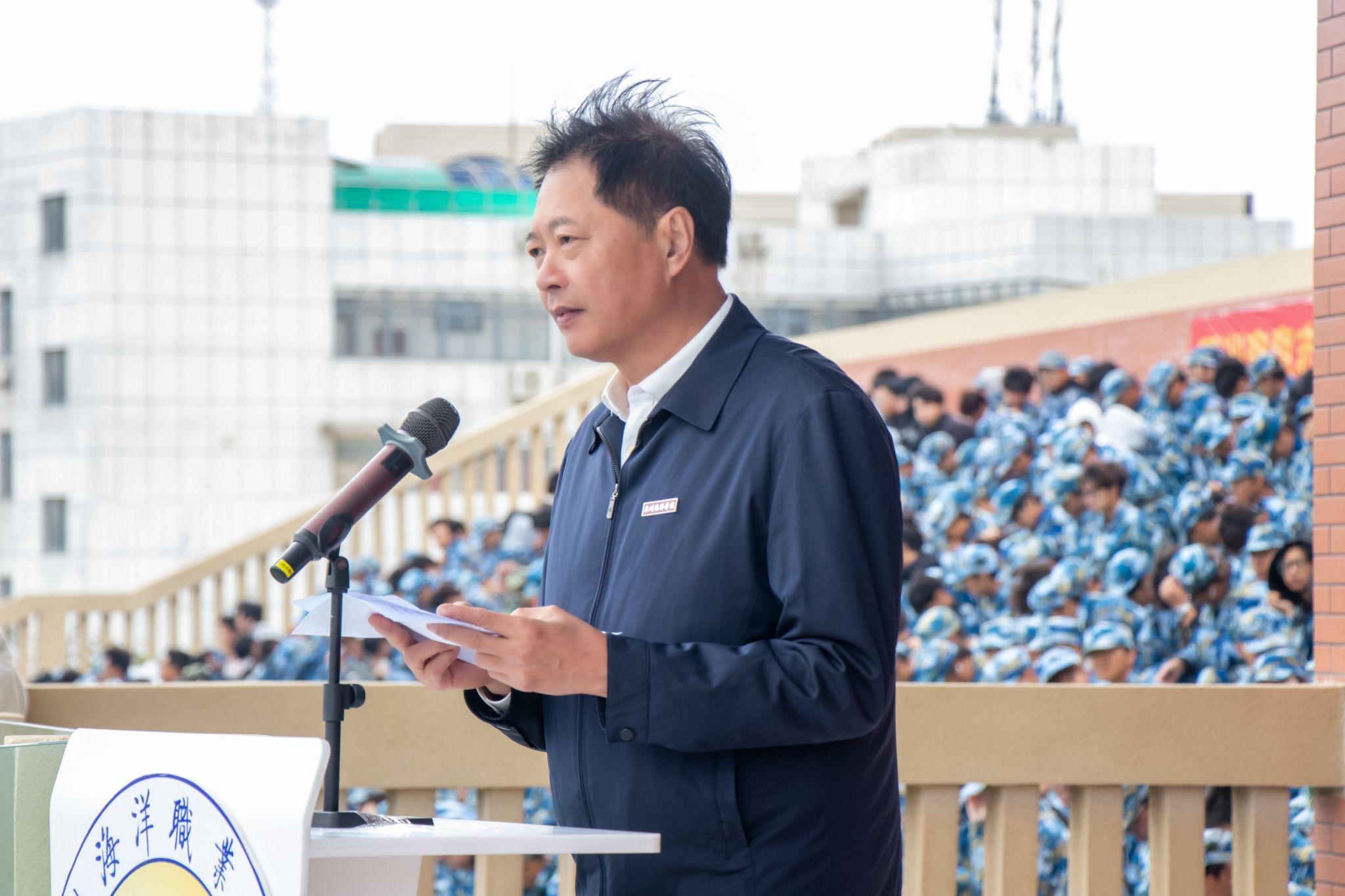 校长庄伟廉在总结讲话中,向承训部队全体教官、学校学工队伍表达诚挚谢意,并向顺利完成军训任务的全体同学及受表彰的集体与个人表示热烈祝贺。校长庄伟廉指出,过去的两周时间,全体新生以昂扬姿态投入训练,同学们在骄阳下挺立如松,在风雨中步履铿锵。分列式上整齐的队列、嘹亮的口号、刚劲的军姿,展现了泉海学子吃苦耐劳、奋勇争先的良好风貌。他寄语全体2025级新生要始终保持这份坚毅与担当,在泉海这片沃土上勤奋学习、善于思考、踏实前行、追求高远,成长为有理想、敢担当、能吃苦、肯奋斗的新时代青年,为海洋强国战略和实现中华民族的伟大复兴贡献青春力量。