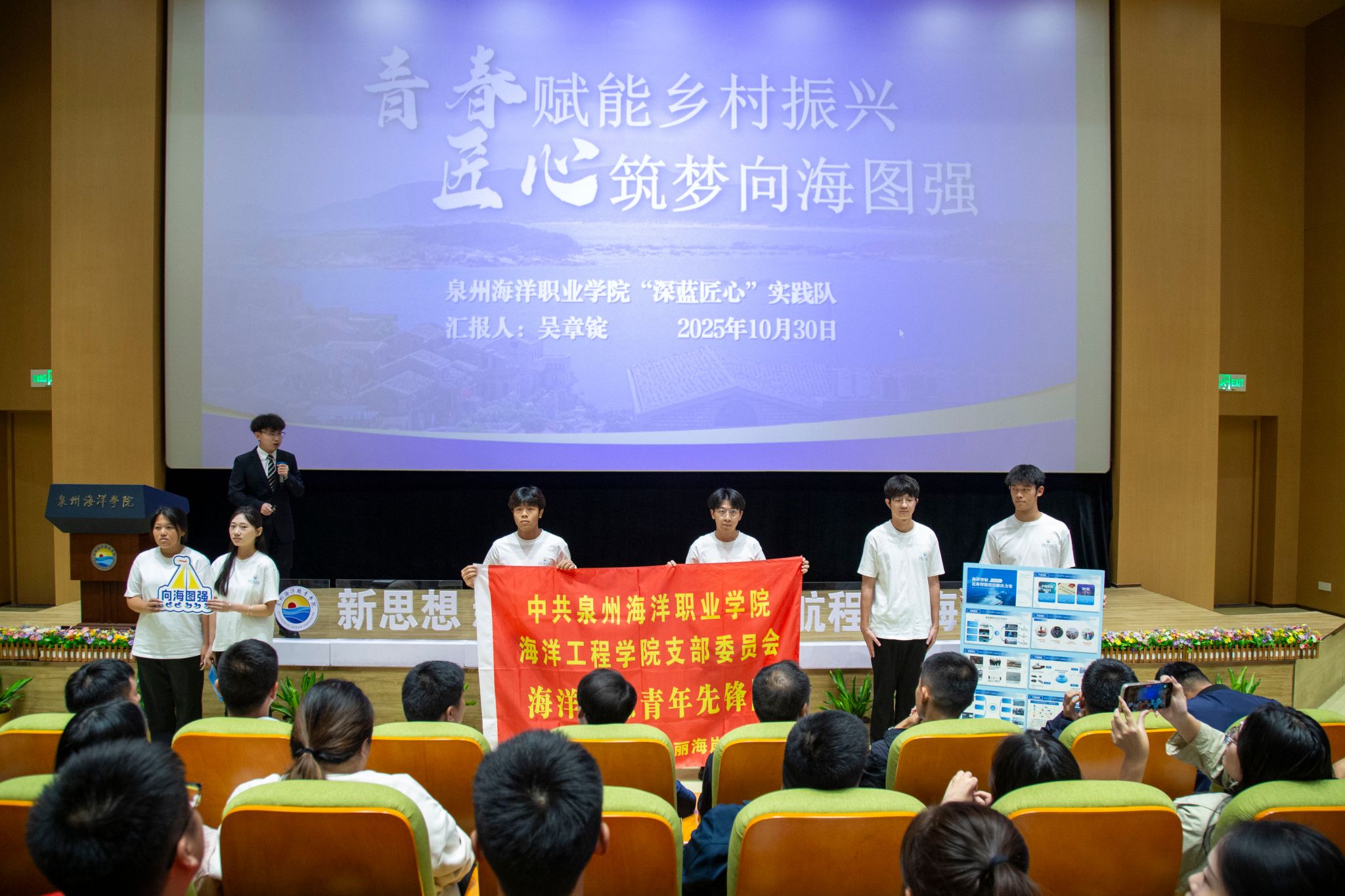 (新闻中心讯 校团委供稿 党委宣传部报道)为引领广大团员青年在社会课堂中受教育、长才干、作贡献,10月30日,泉州海洋职业学院2025年暑期“三下乡”社会实践答辩暨成果展示在图书馆二楼报告厅举行。校党委副书记、副校长李明灿,党委学工部、校团委、各二级学院党总支(直属党支部)、各二级学院团委(团工委)等党团组织负责人、暑期“三下乡”各实践队指导老师及200余名学生代表共同参加活动,见证实践成果。