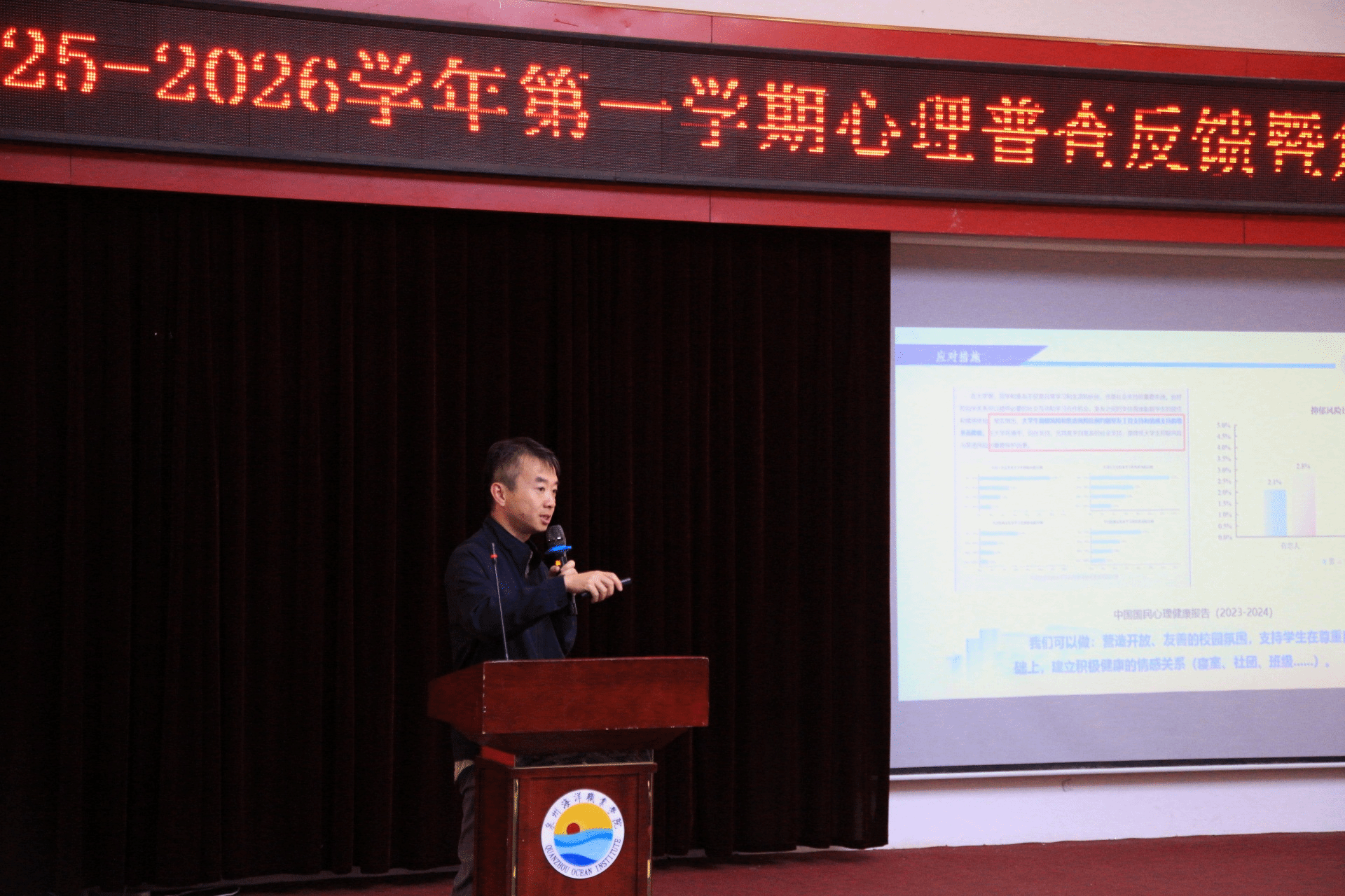 (新闻中心讯 党委学工部供稿 党委宣传部报道)为科学研判学生心理健康状况,提升学工队伍心理危机预防能力,11月5日上午,学校召开2025年秋季心理普查数据反馈暨大学生危机干预专项培训会。党委学生工作部、校团委、各二级学院党支部负责人,以及各学院心理辅导站副站长、全体辅导员参加会议。