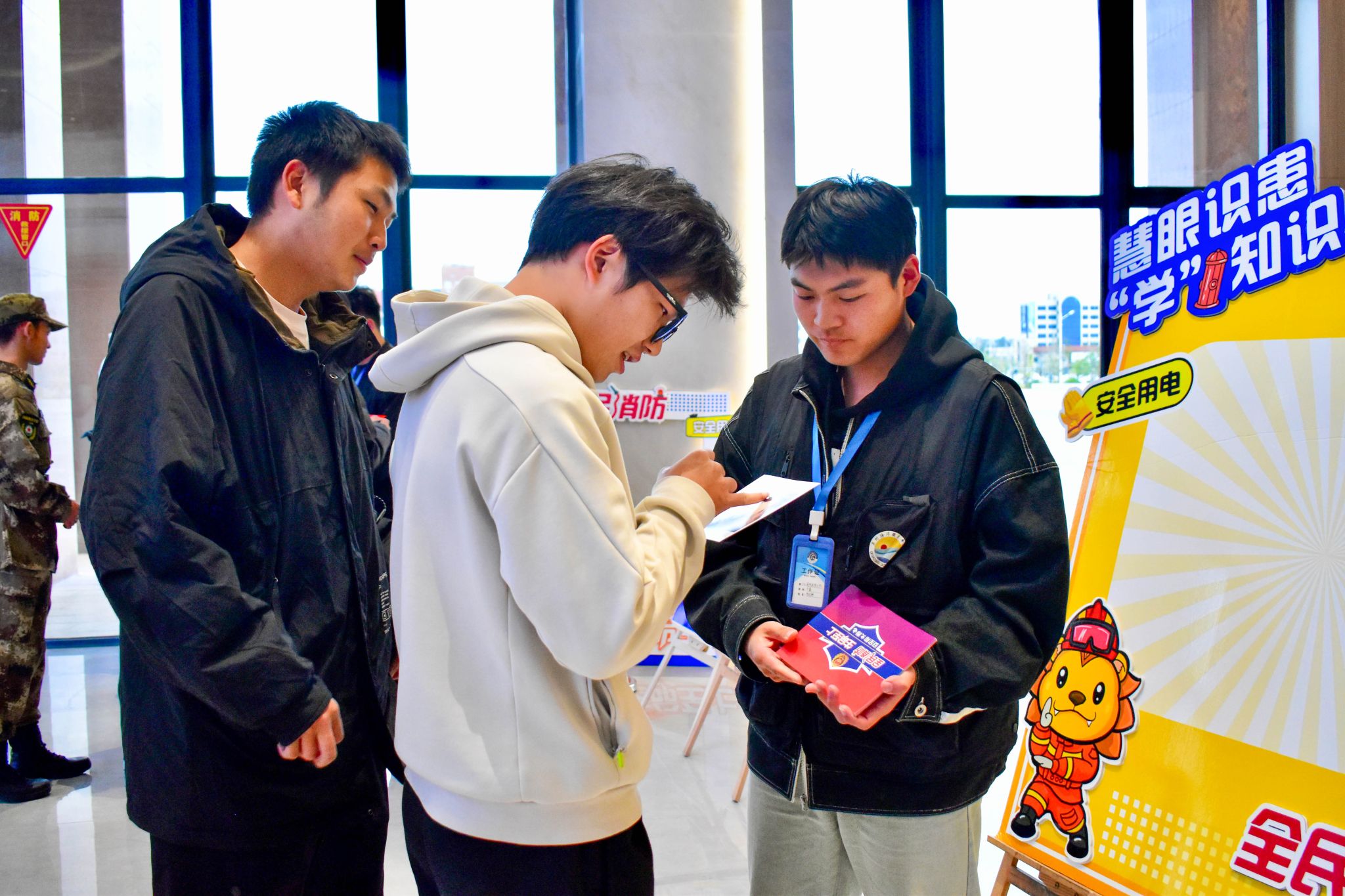 颁奖仪式结束后,备受期待的消防安全游园会正式拉开帷幕!现场设置了多个集趣味性、知识性、体验性于一体的互动项目,同学们踊跃参与,在轻松欢乐的氛围中学习消防知识、掌握应急技能。从消防器材实操到安全知识问答,每一个项目都让大家收获满满,不少同学还通过抽奖环节赢得了精美礼品,在参与中加深了对消防安全的认知。