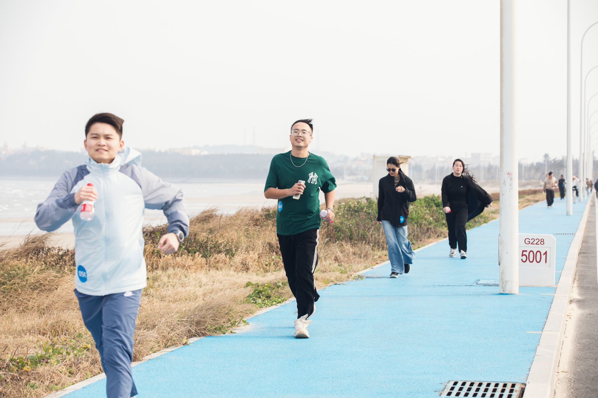 活动伊始,校工会主席、副主席分别作动员讲话,阐述了活动意义,强调了安全事项,并鼓励大家在徒步过程中互帮互助、携手同行。随后,队伍沿海岸线向六胜塔进发。校工会学生助理团全程协助,承担路线引导、安全保障、补给发放及终点奖品分发等工作,为活动顺利开展提供了有力支持。