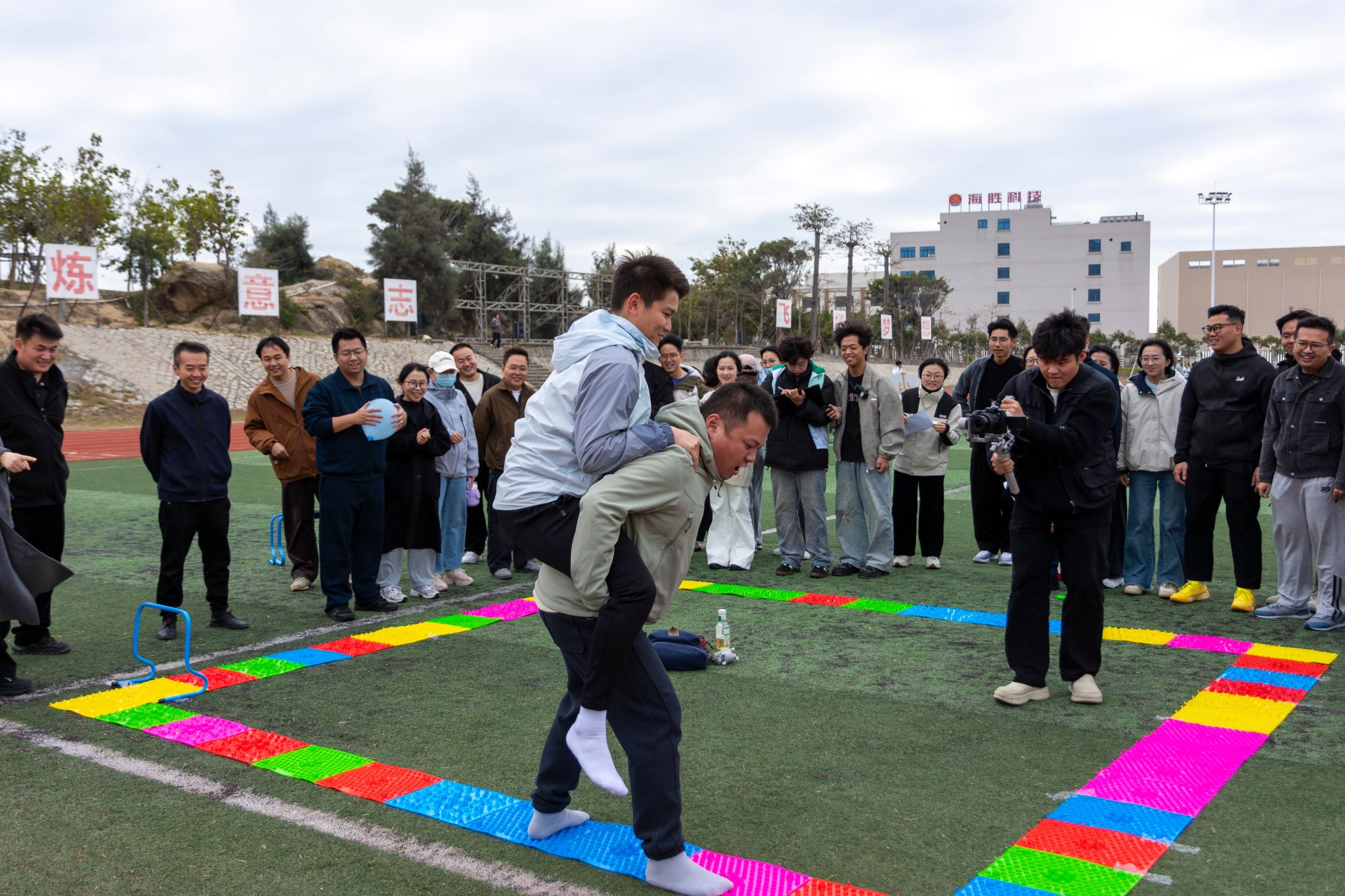 (新闻中心讯 党委学生工作部心理发展指导中心供稿 党委宣传部报道)12月22日下午,学校第一运动场变身活力减压站——由党委学生工作部心理发展指导中心组织的“同心减压·聚力前行”辅导员团体素质拓展活动在这里欢乐举办!学校全体辅导员热情投入,一起释放压力、畅快互动、凝聚共识,共同开启一段充满笑声与协作的午后时光。