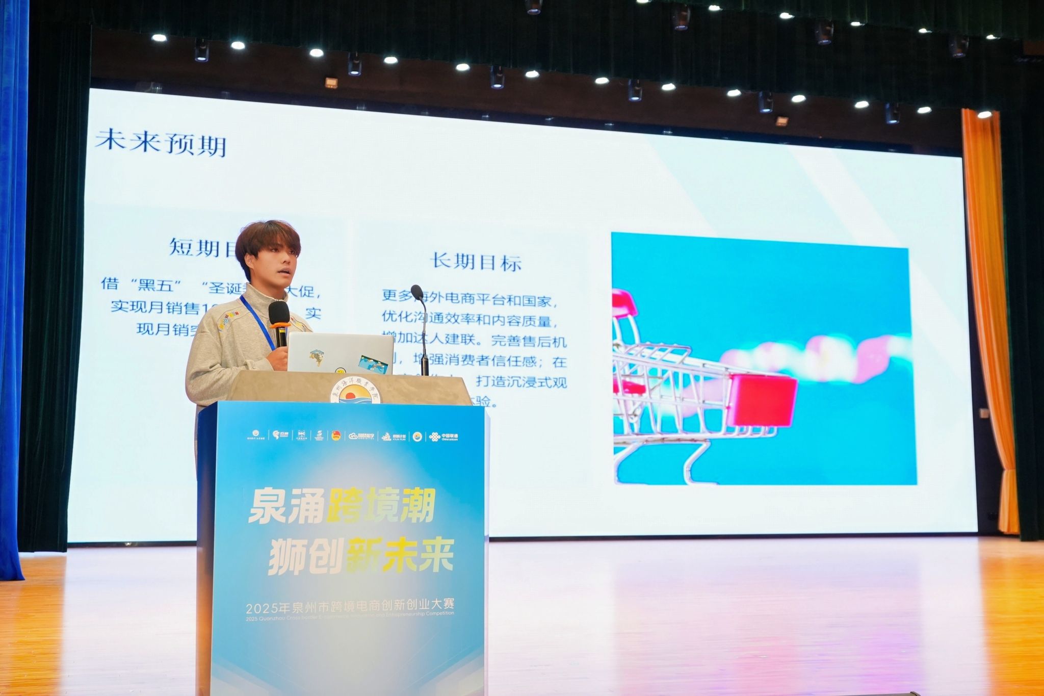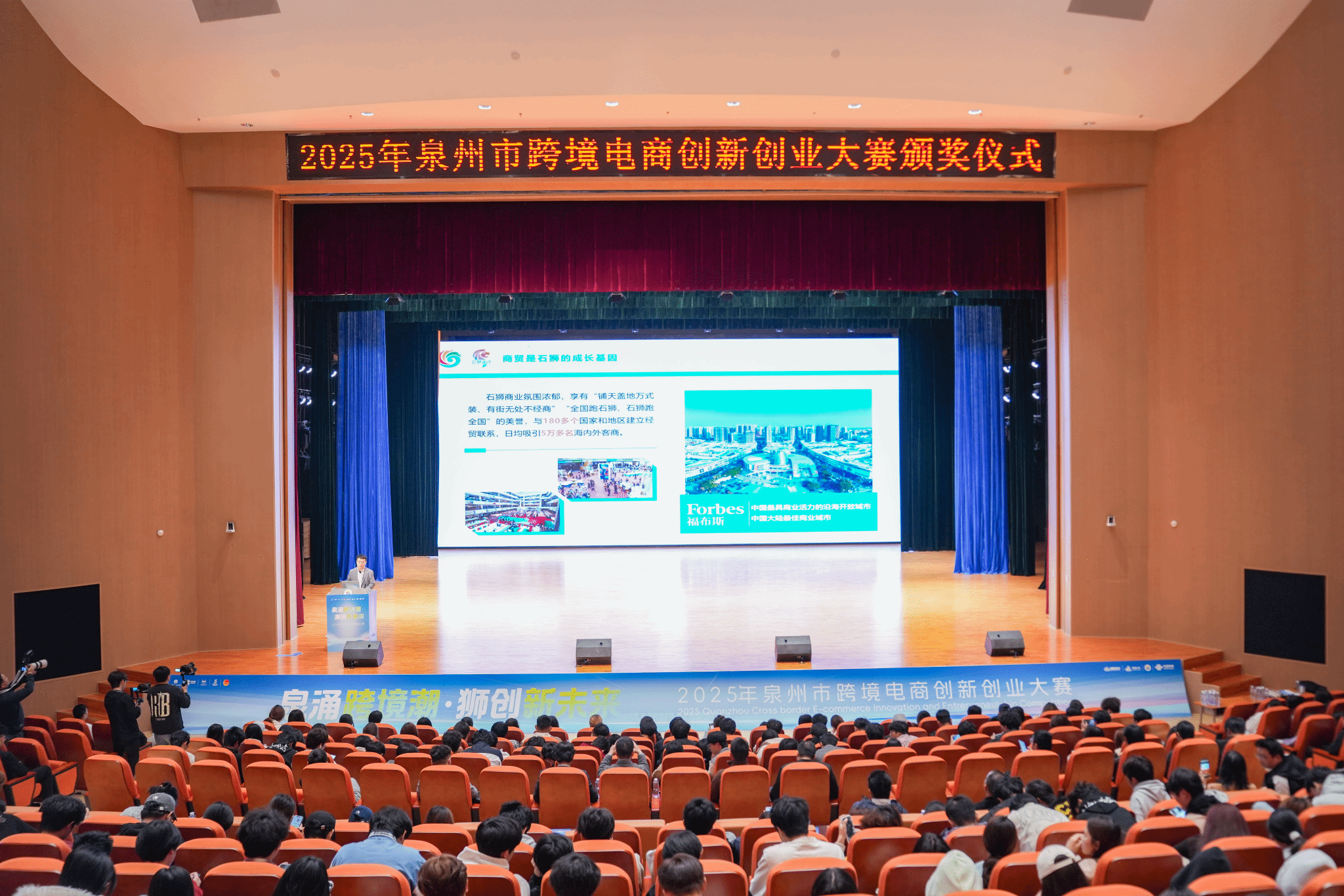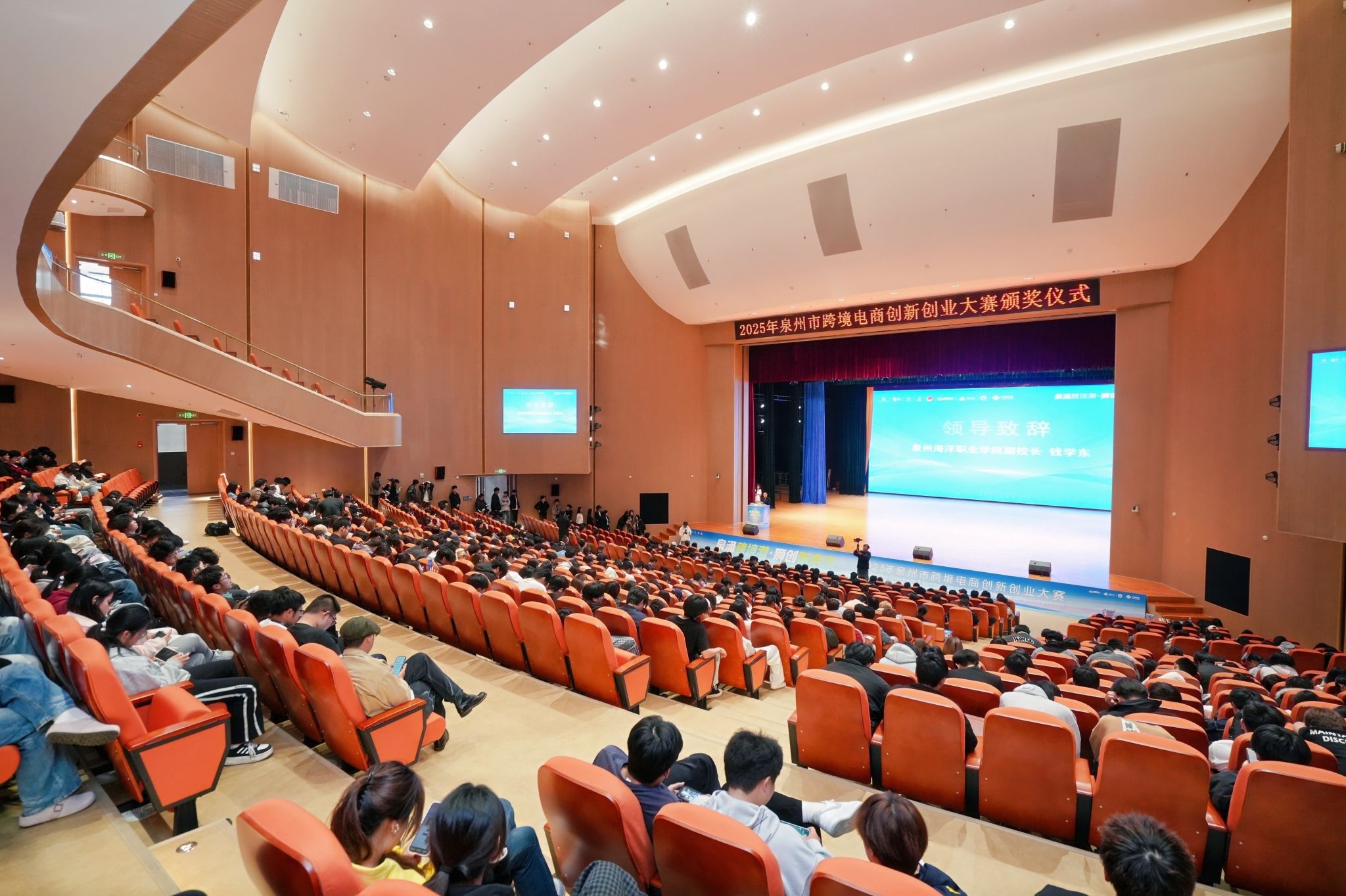(新闻中心讯 党委宣传部报道)12月24日,“泉涌跨境潮,狮创新未来”2025年泉州市跨境电商创新创业大赛决赛暨颁奖典礼在我校举行。自10月启动以来,这场以“以赛代训、以赛引才、以赛促创”为特色的大赛,历时两个半月,吸引了全市114支队伍踊跃参与。经过层层选拔,10支顶尖团队最终会师决赛舞台。活动当日,政府部门领导、行业专家、企业代表、创业青年及本地高校师生等千余人齐聚我校,共同见证了这场激情澎湃的青春创业盛会。