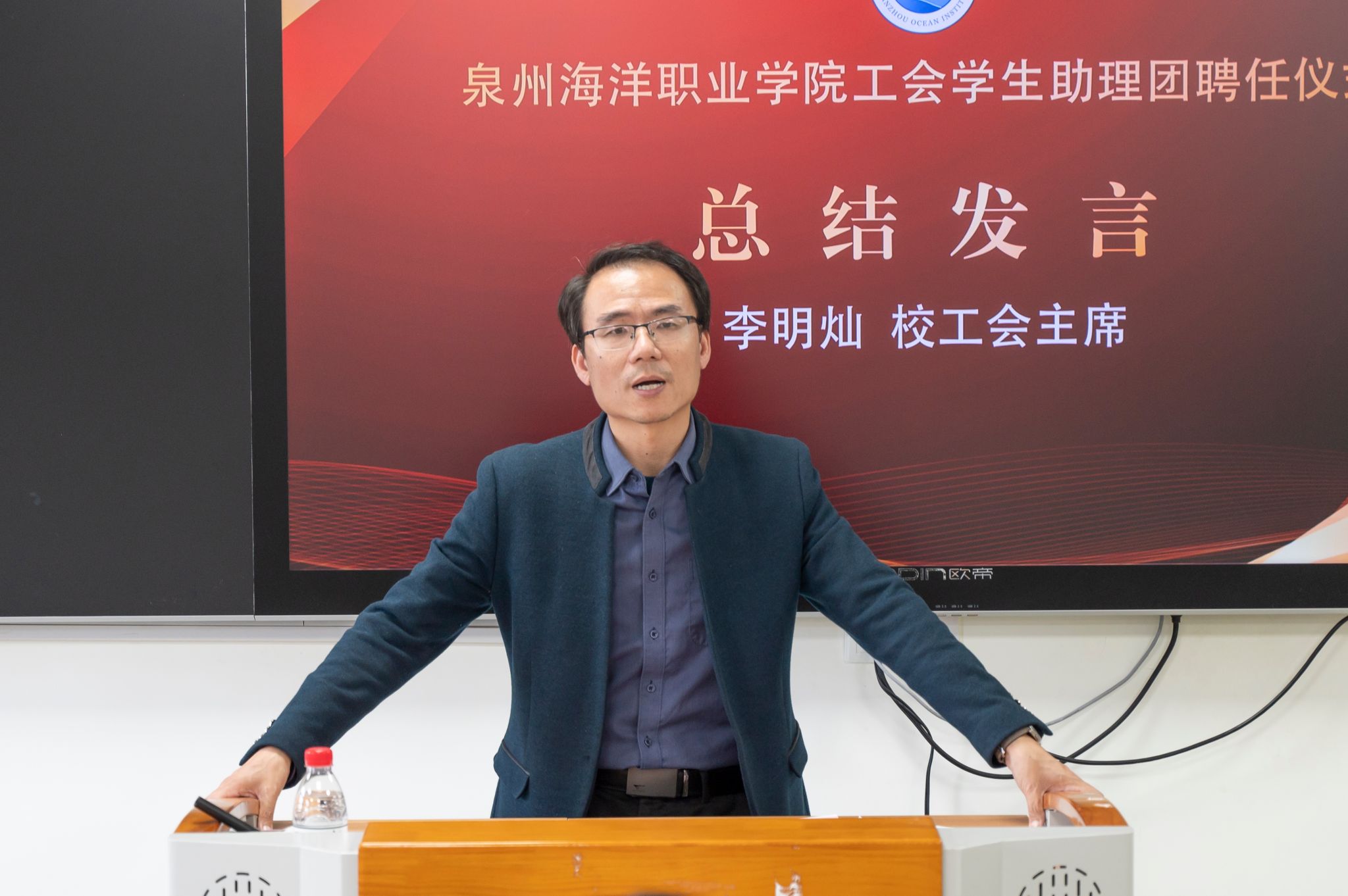 (新闻中心讯 校工会供稿 党委宣传部报道)12月24日下午,泉州海洋职业学院工会第二届学生助理团聘任仪式在智慧教室举行。校工会主席李明灿、副主席孙玉坤及全体工会委员共同出席。