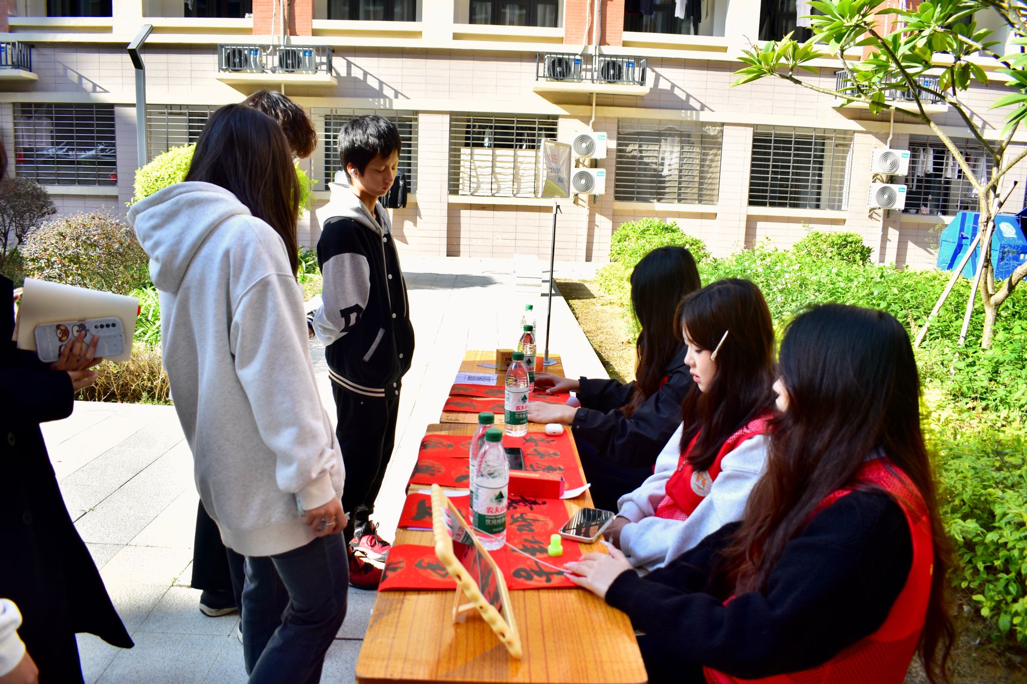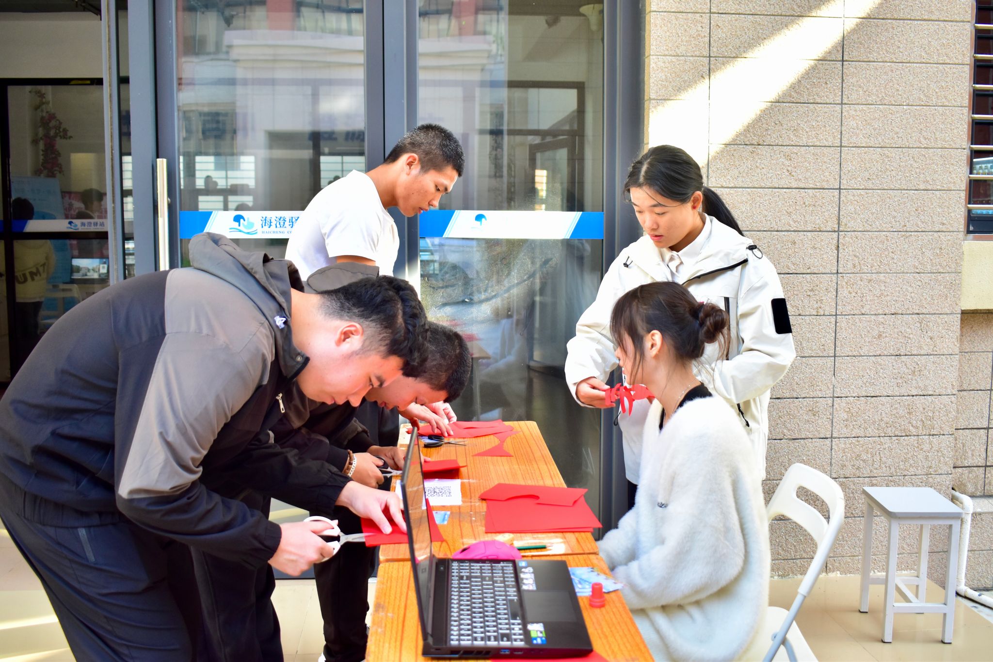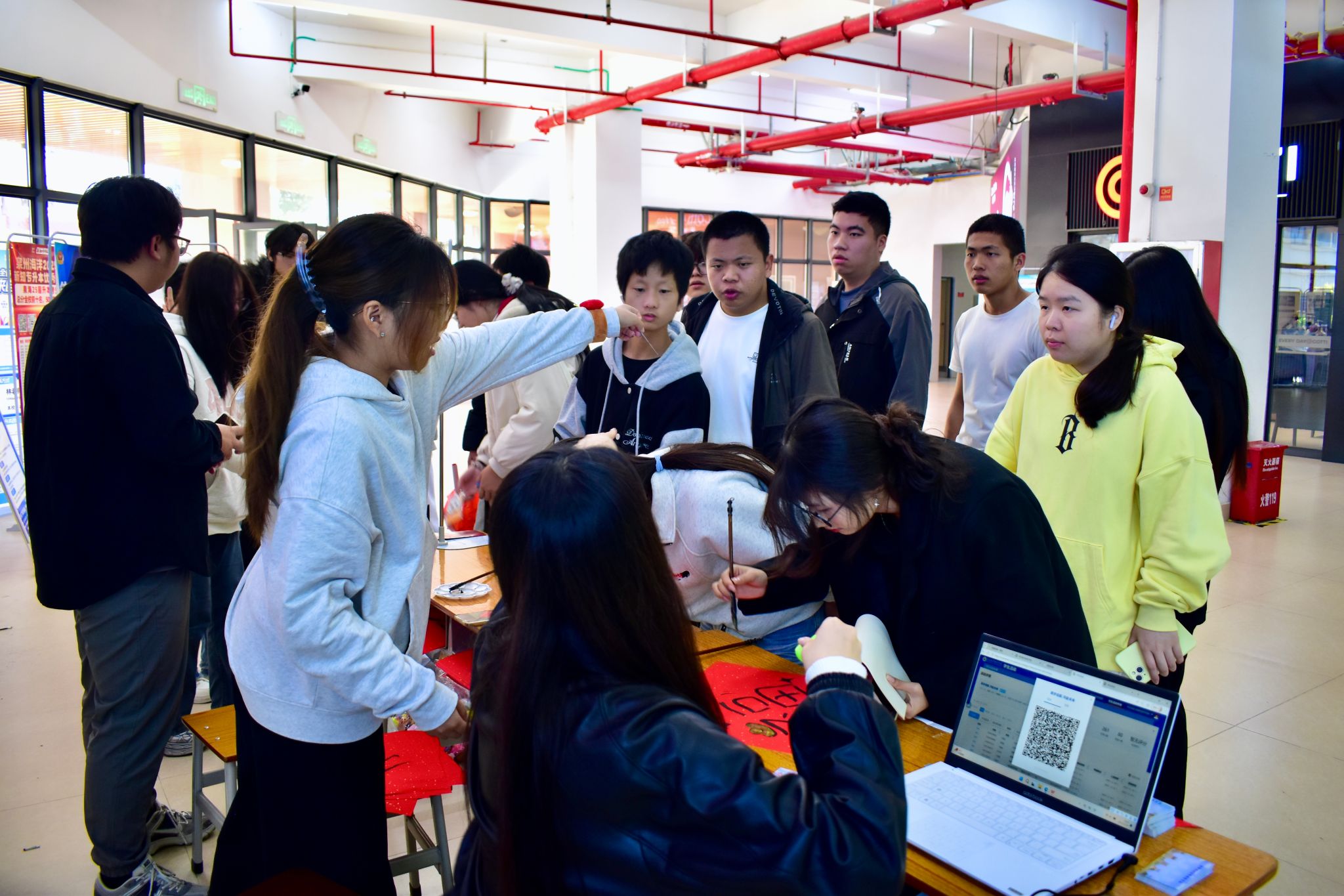 巧手造物、年味拉满!位于海澄驿站的手作体验区,以传统文化为底色,融合创意与巧思,吸引众多学生驻足参与。在这里,笔墨纸砚、彩线螺钿都变成了灵感的载体。同学们静心投入,剪出红火窗花,勾勒生动脸谱,巧制清香香囊,书写祝福春联——每一件手作,都蕴含着大家对新年的真挚期盼。