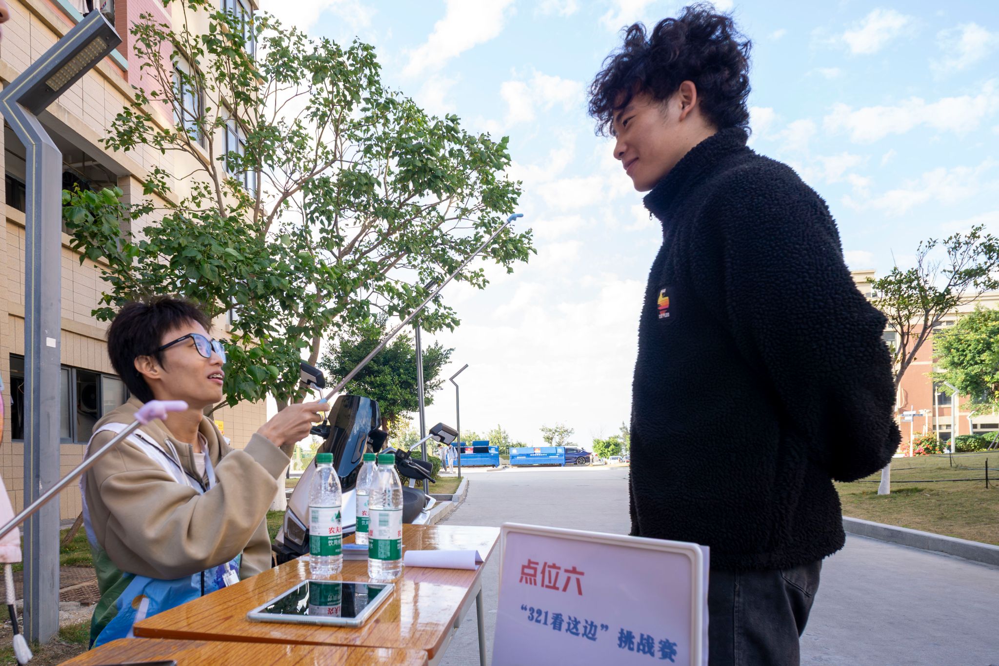 趣味互动区以轻松欢乐的氛围成为“解压圣地”,同学们斗智斗勇,笑声与欢呼声此起彼伏。拼春联比手速、听指令反套路、识图猜地点、传声摹词句……轻松的氛围让每个人都成为快乐的参与者。