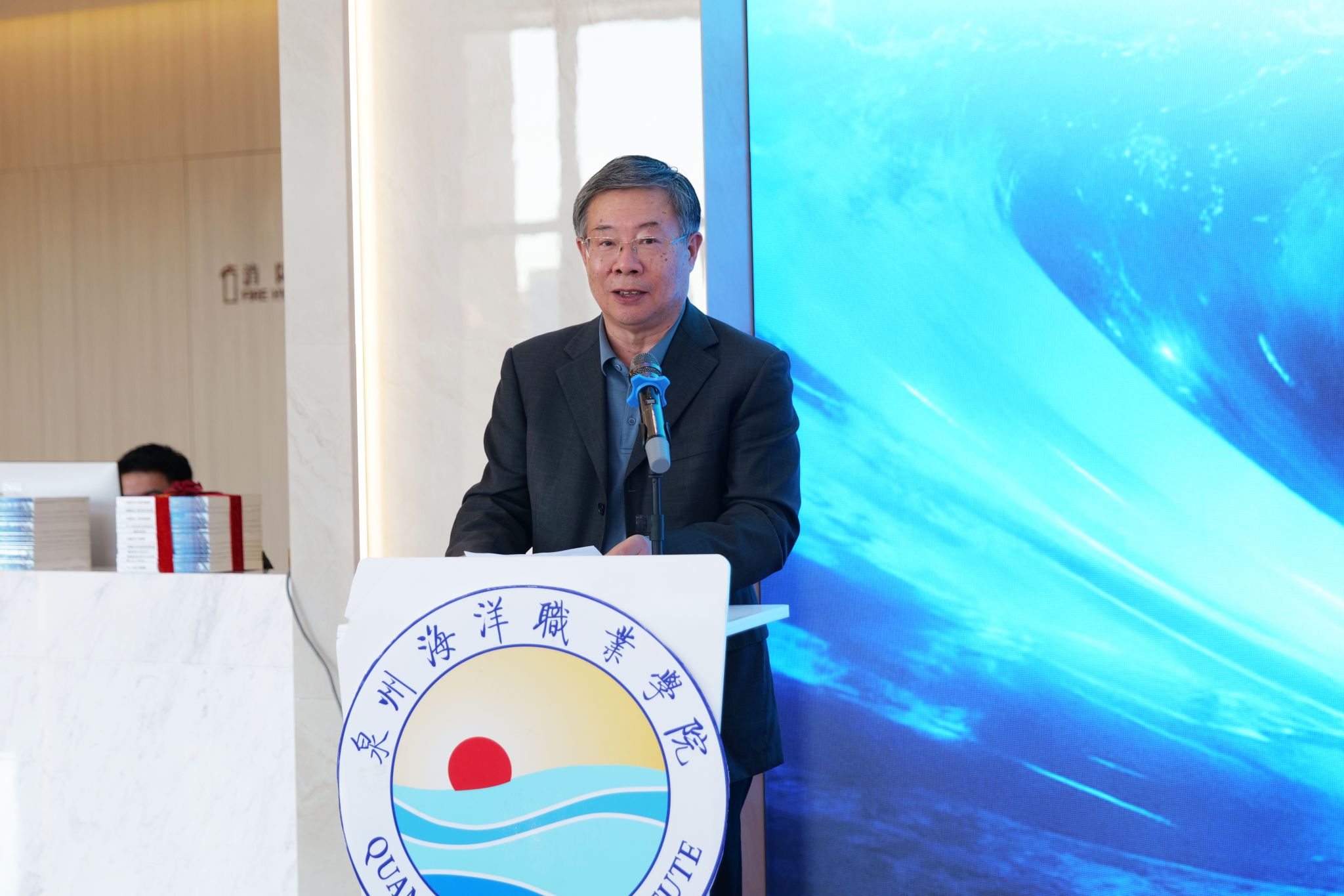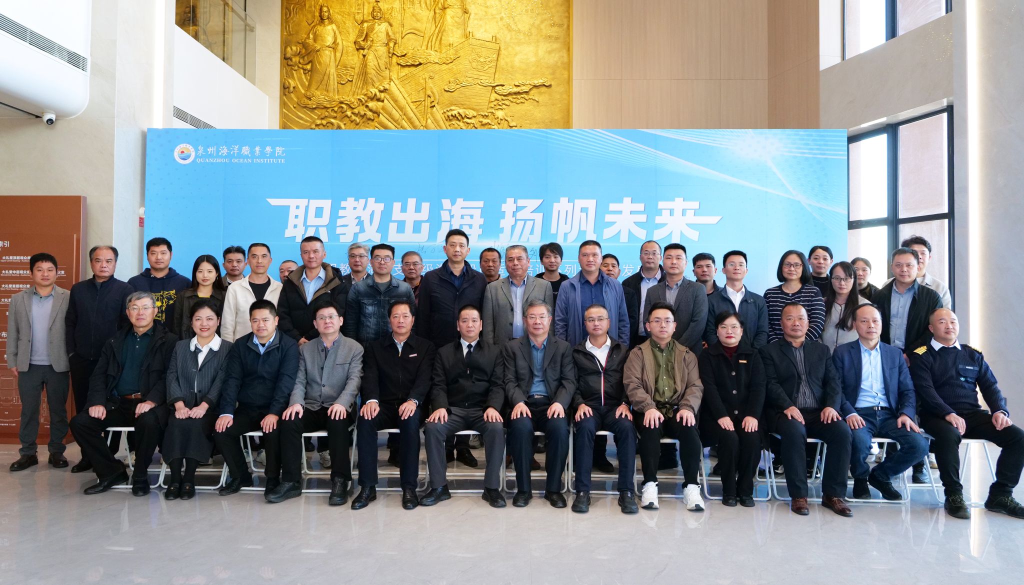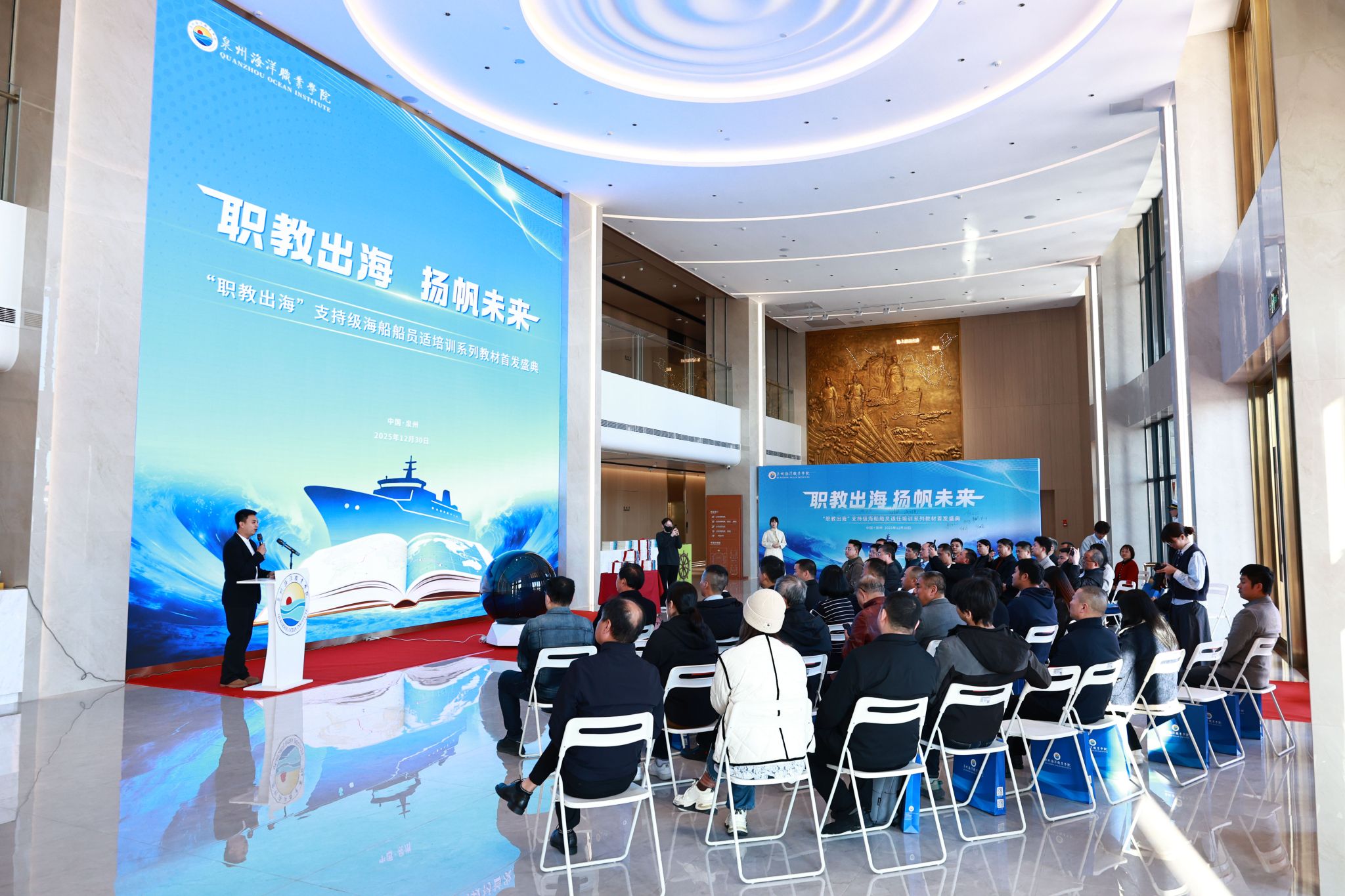(新闻中心讯 党委宣传部报道)12月30日下午,“职教出海”支持级海船船员适任培训系列教材在我校国际学术交流中心正式首发。福建海事局船员管理处副处长林祥仲、泉州海事局副局长王烽、大连海事大学出版社董事长刘明凯、石狮市教育局局长李迎河、泉州海洋职业学院校长庄伟廉,以及学校董事、教材编审委员会主任蔡永鸿与业内专家、编写团队出席仪式。