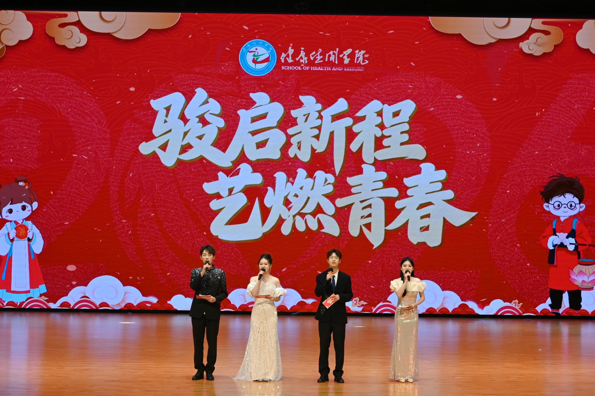 (新闻中心讯 健康休闲学院供稿 党委宣传部报道)12月30日晚,健康休闲学院“骏启新程・艺燃青春”新春联欢晚会在国际学术交流中心举行。校长庄伟廉、校党委书记黄真真、副校长刘锦辉、钱学东、陈东水,学校董事蔡永鸿,各职能部门、二级学院负责人与千余师生欢聚一堂,共迎新年。