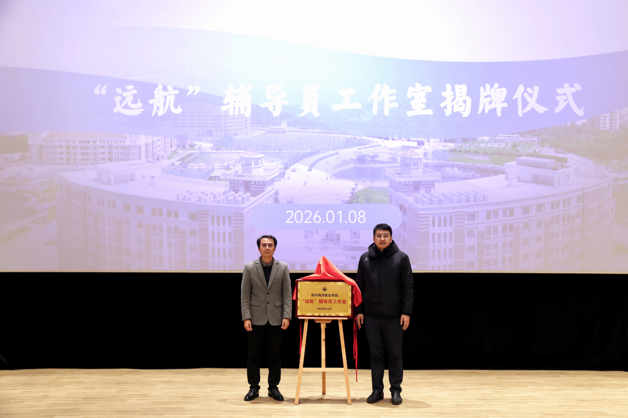 校党委副书记、副校长李明灿与副校长陈永鑫共同为“远航”辅导员工作室揭牌。