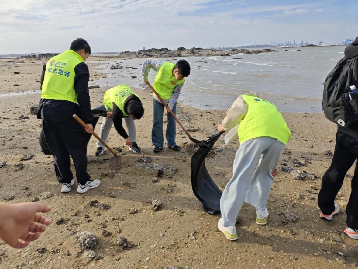 “蓝海春潮”志愿服务队长期开展海洋环保、社区服务等公益活动。项目负责人林伟亮同学分享道:“在持续参与净滩行动的过程中,我们一次次看到塑料瓶、渔网、微塑料反复出现,这让我们更真切地体会到人类生活与海洋环境的密切关联。行动或许微小,但持续的行动本身就是一种改变。”