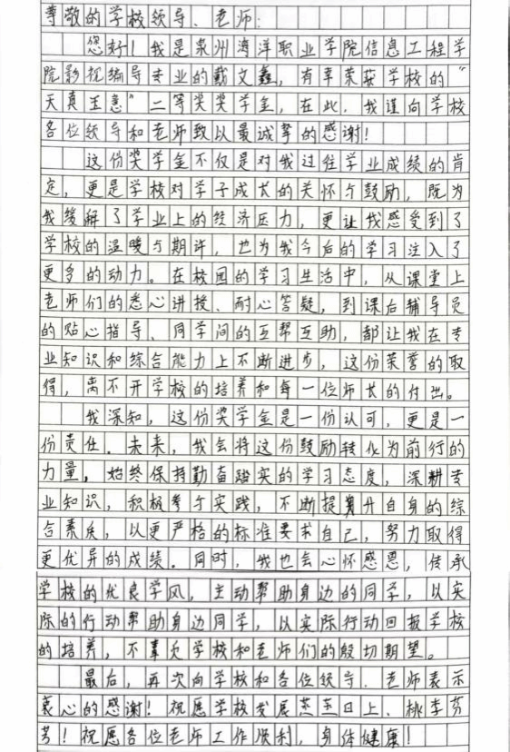 (新闻中心讯 党委学生工作部供稿 党委宣传部报道)岁序更替,华章日新,马蹄踏春,佳音即至。值此2026年丙午马年新春佳节,一封封承载着荣誉与期许的“天真玉意奖学金”喜报,将泉州海洋职业学院的育人温度,送进每一位获奖学子的家门。