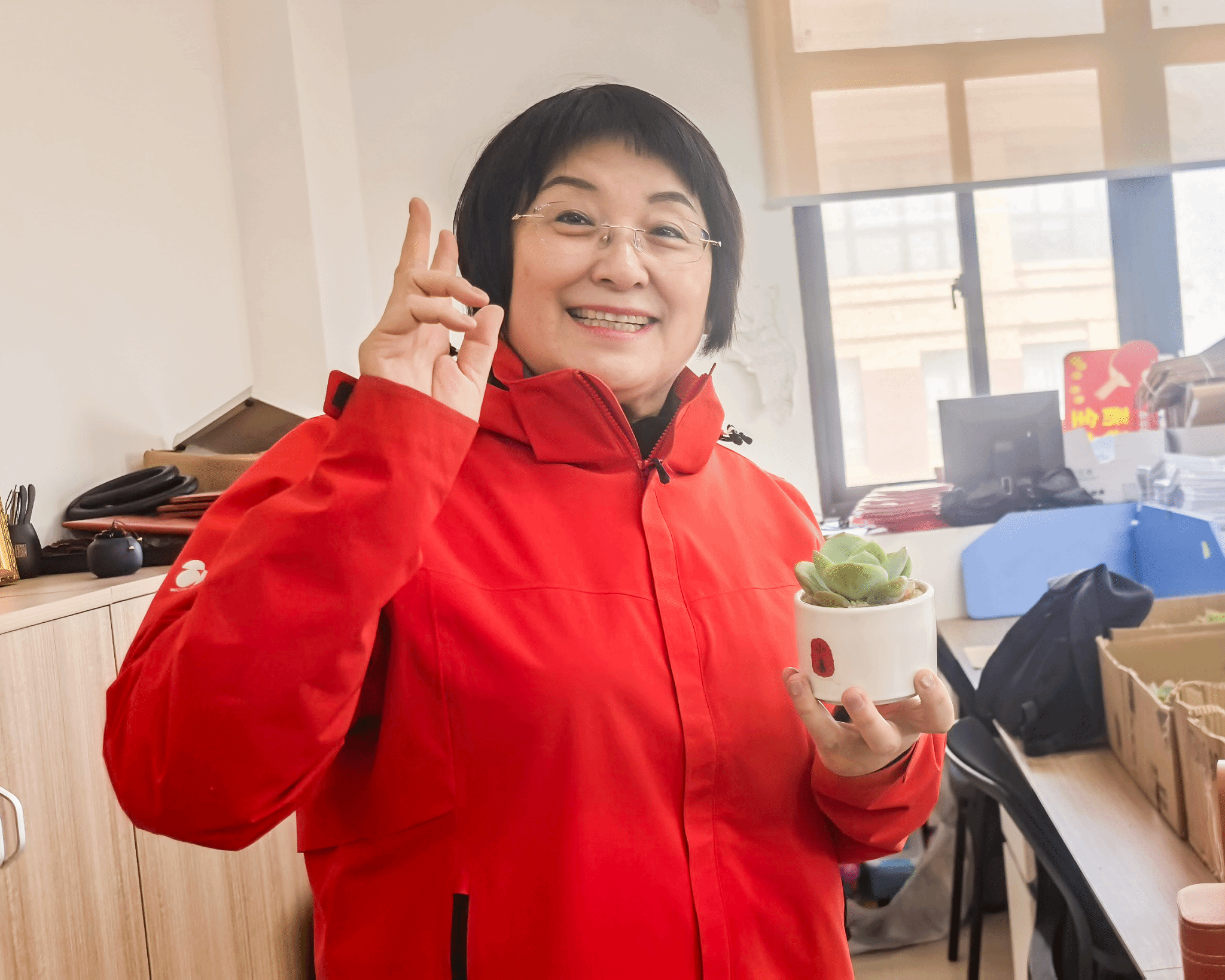 这份心意,早在活动开始前就已悄悄抵达。一套便携雅致的旅行茶具,配上一盆生机盎然的多肉绿植,由各工会小组逐一送到每一位女教职工手中。愿大家在辛勤耕耘教育事业、收获“桃李满天下”成就的同时,亦能于忙碌间隙,泡一壶清茶舒缓身心,养一隅绿意装点生活,永葆“案头一抹绿”的闲情逸致。