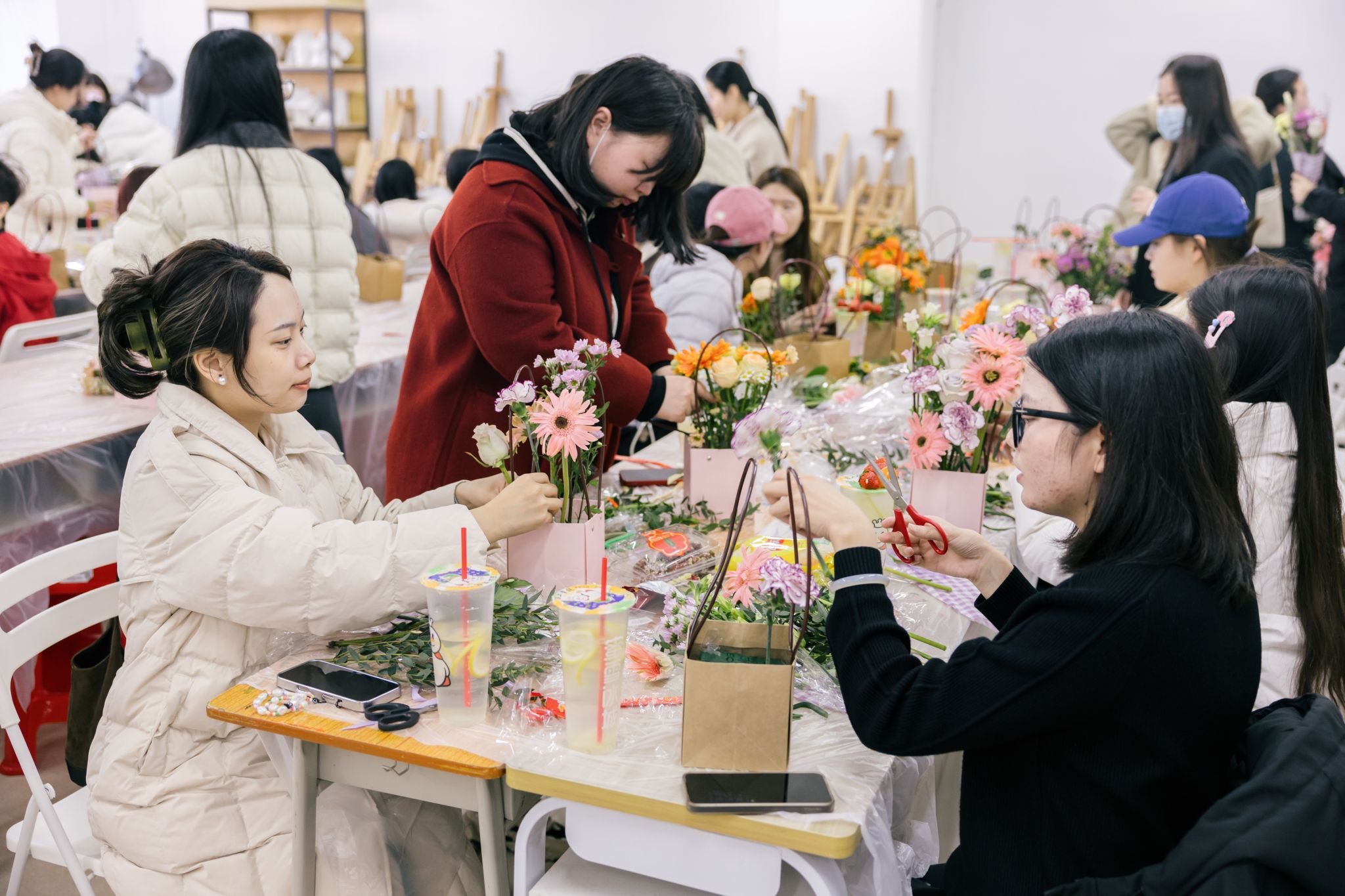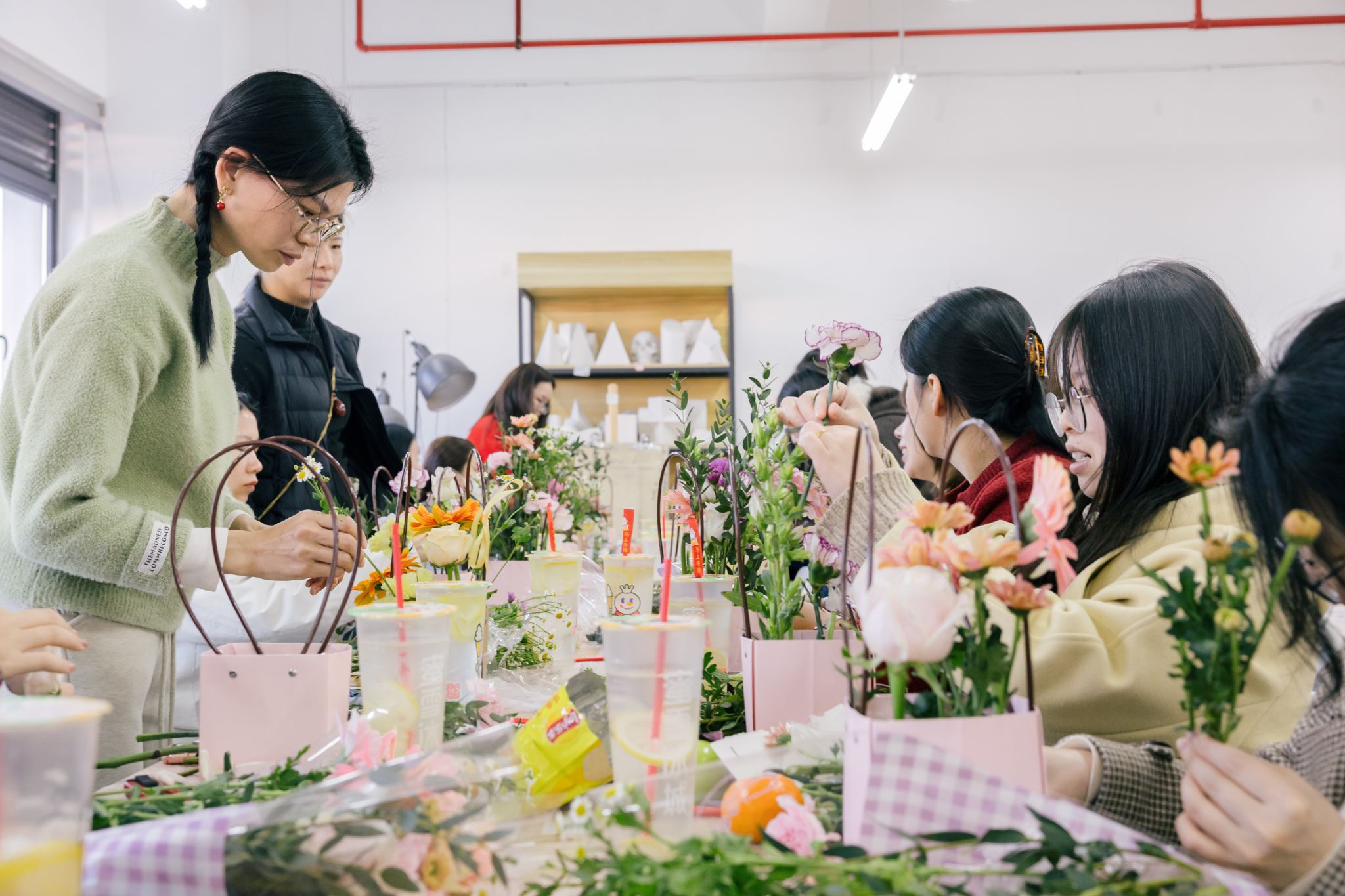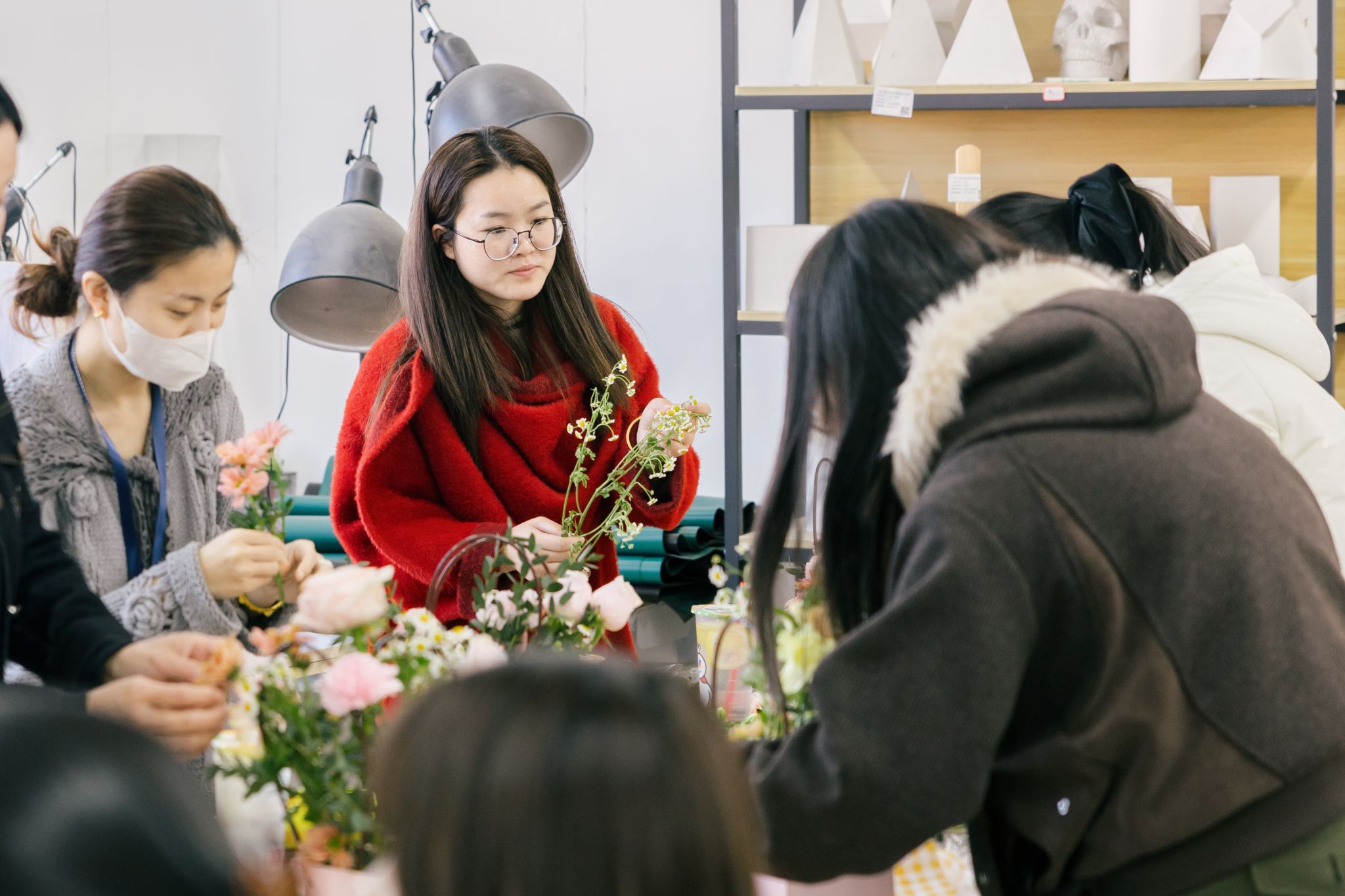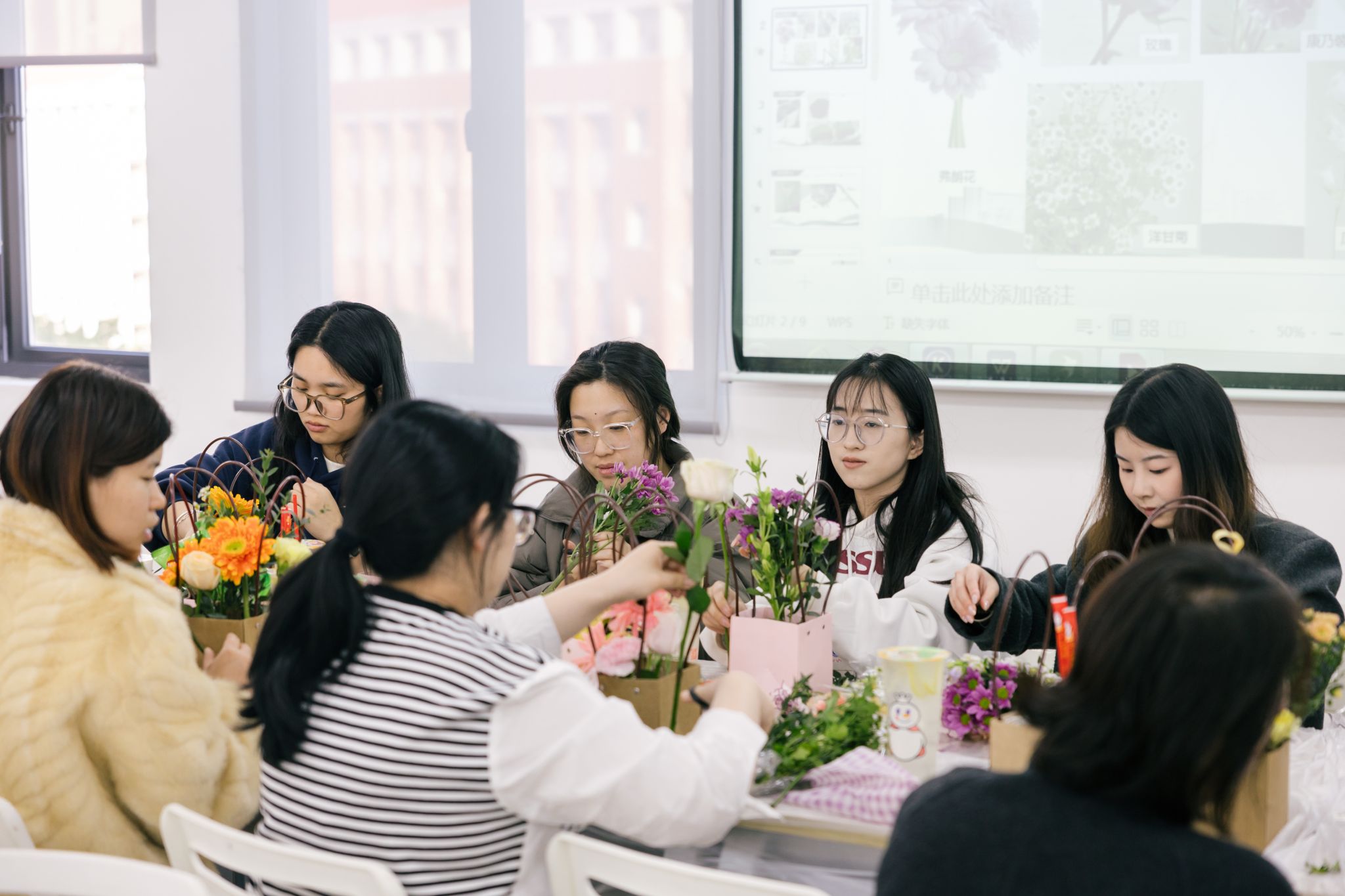 本次活动的核心环节——传统插花艺术体验,得到了女教职工们的热烈响应。在花香馥郁的室内,校内花艺老师柯晓暄进行了细致的现场示范与指导,从花材特性、色彩搭配到造型设计,一步步引导大家领略插花艺术的魅力。女教职工们化身巧手花匠,充分发挥想象力与创造力,全身心投入创作,用心修剪、搭配,将一朵朵鲜花变成了一件件独具匠心的花艺作品。现场欢声笑语,大家在感受美、创造美的过程中,愉悦了心情,陶冶了情操,也促进了彼此间的交流。