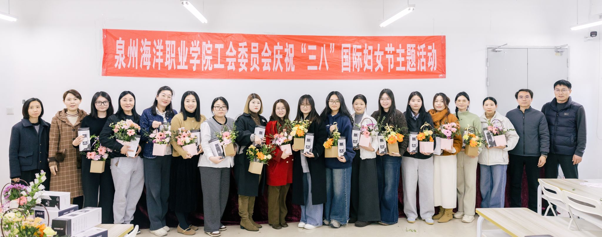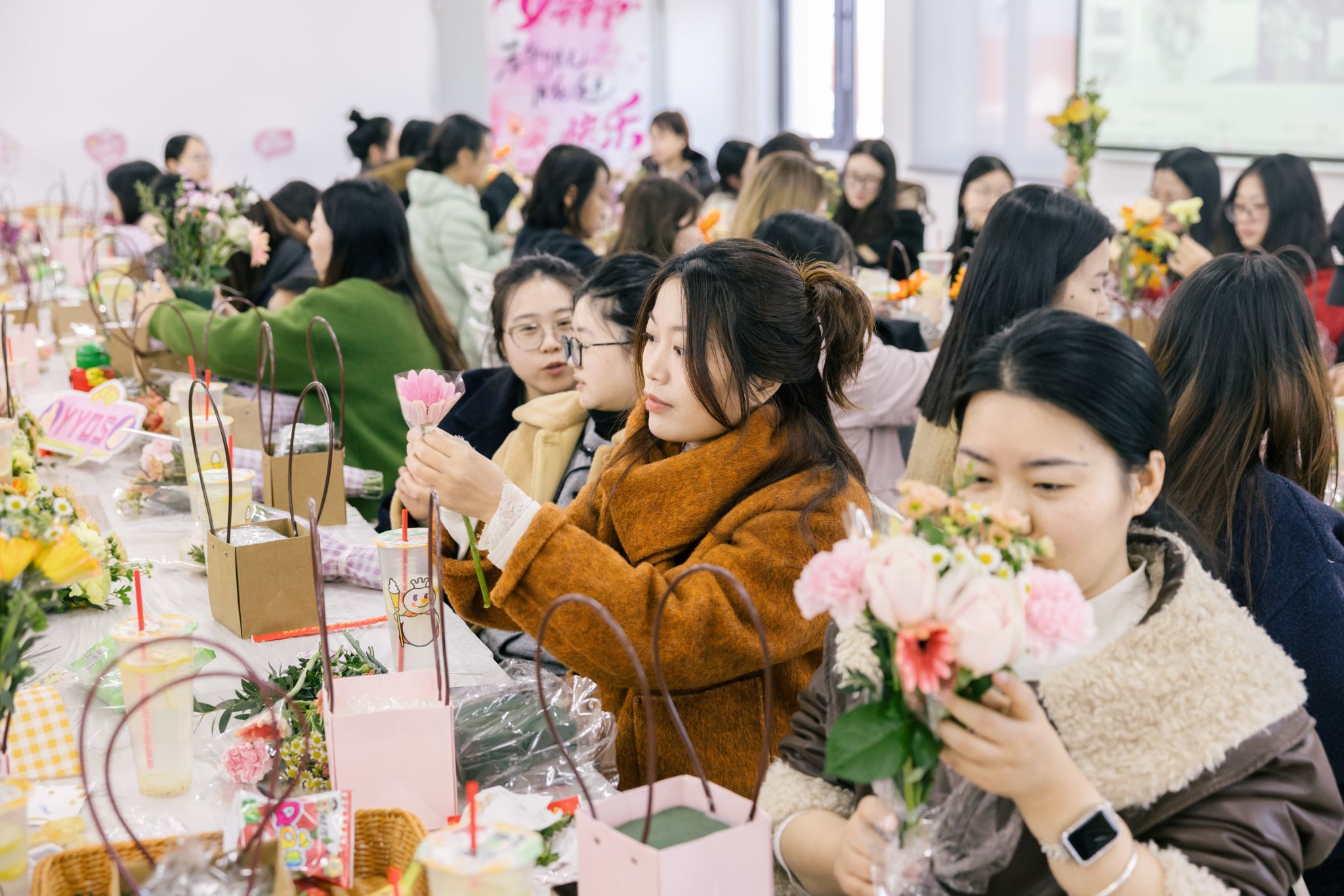 (新闻中心讯 校工会供稿 党委宣传部报道)三月春光,花开正好。为庆祝第116个“三八”国际劳动妇女节,3月12日,校工会以“植此青绿·花漾巾帼”为主题,在图书馆东侧503室为全校女教职工准备了一场温暖的春日聚会。百余名女教职工暂时放下忙碌的工作,在绿意与花香中,共同度过了一个属于自己的午后时光。校党委书记黄真真,党委副书记、副校长、工会主席李明灿等也来到现场,为大家送上节日的祝福。