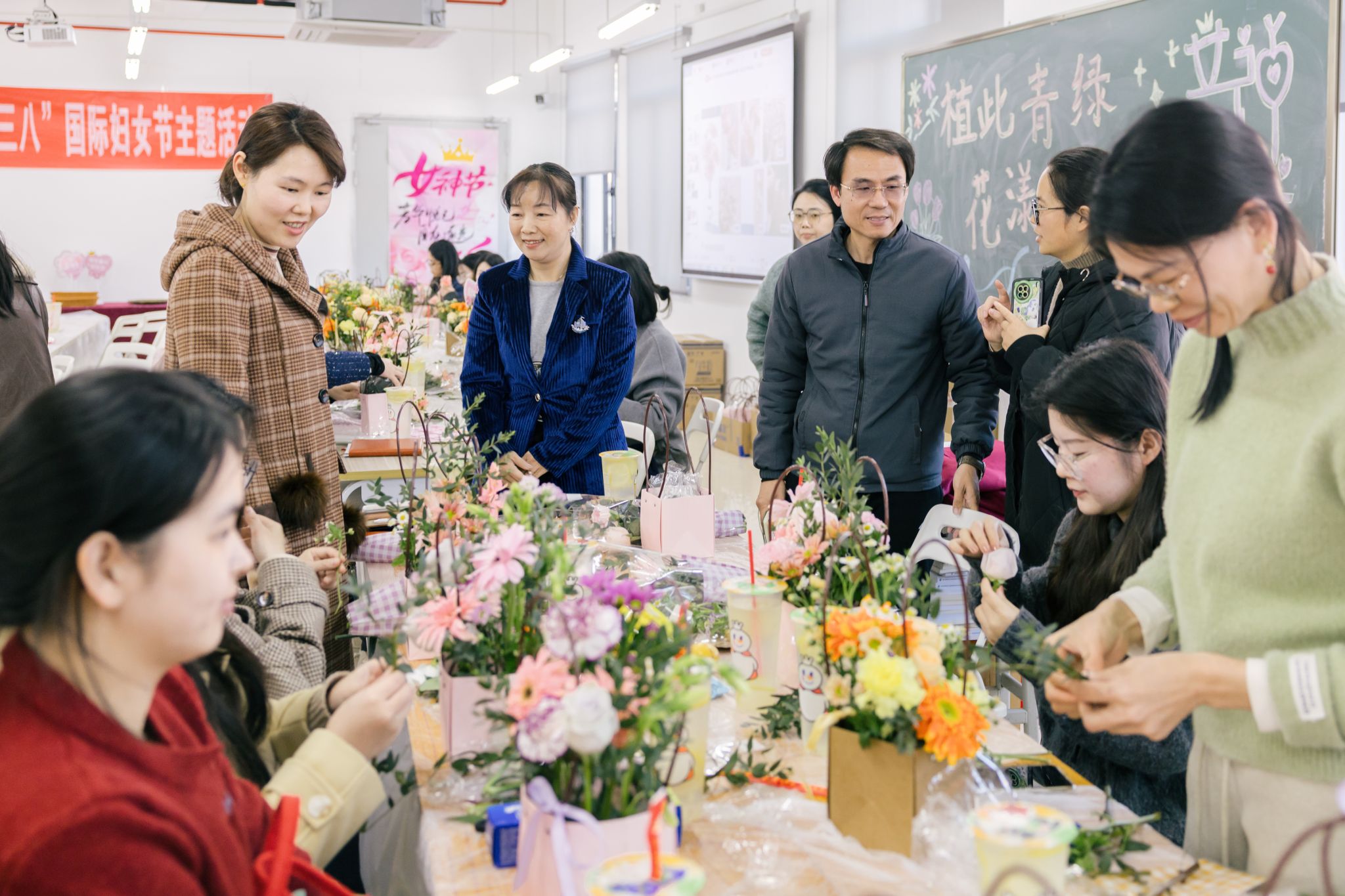 此次“三八”妇女节系列活动,以植树节之“绿”为生态底色,以妇女节之“花”为巾帼亮点,将劳动教育、生态文明理念融入节日文化,以花艺之美涵养师德师风。那一盆盆生机勃勃的绿植,一件件赏心悦目的花艺作品,不仅是女教职工们献给这个春天的礼物,更是学校女教职工群体内外兼修、热爱生活、昂扬向上的精神风貌的生动写照,为这个春天增添了最绚丽的“她”色彩。