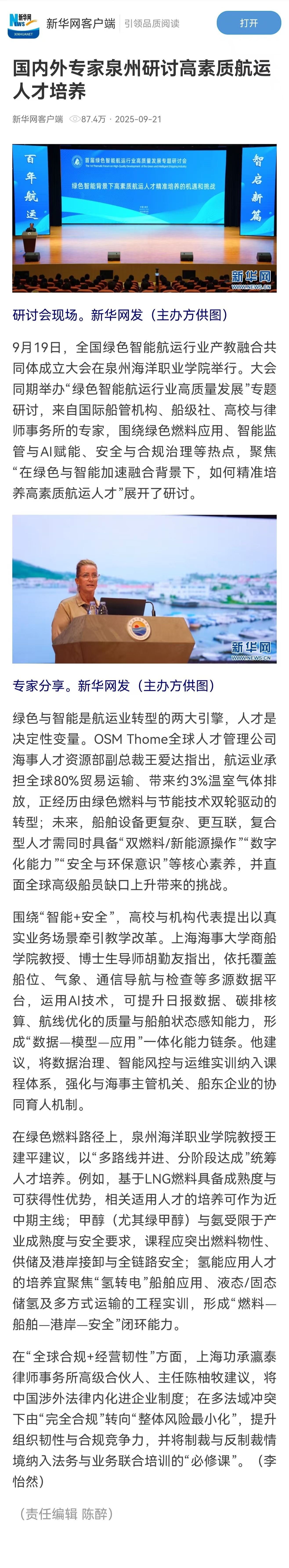 【新华网客户端】国内外专家泉州研讨高素质航运人才培养