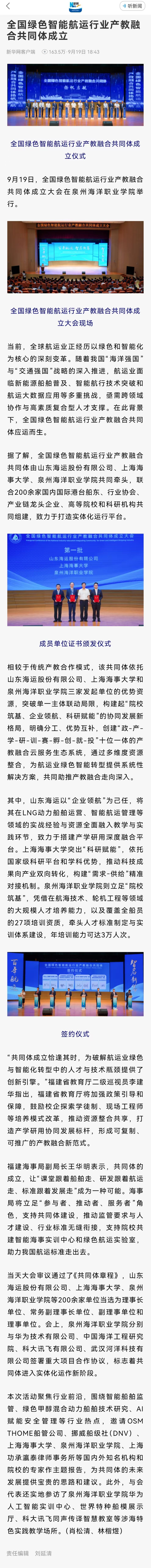 【新华网客户端】全国绿色智能航运行业产教融合共同体成立