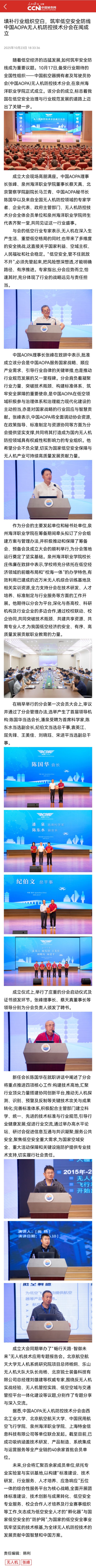 【人民日报社—中国城市网 】填补行业组织空白,筑牢低空安全防线 中国AOPA无人机防控技术分会在闽成立