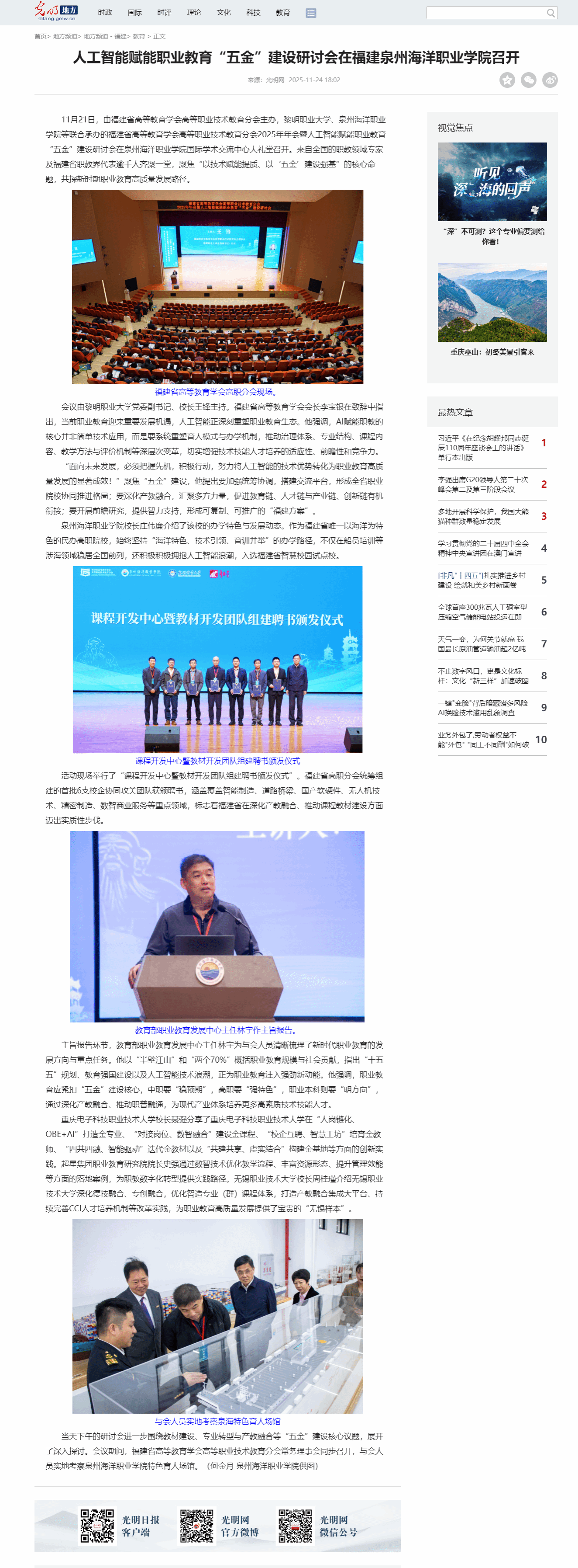 【光明网】人工智能赋能职业教育“五金”建设研讨会在福建泉州海洋职业学院召开