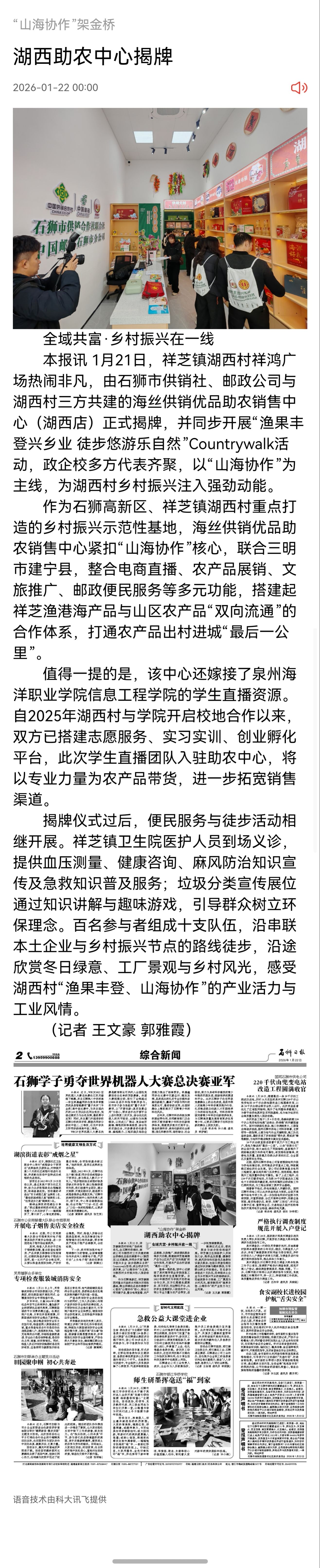 【石狮日报】“山海协作”架金桥 湖西助农中心揭牌