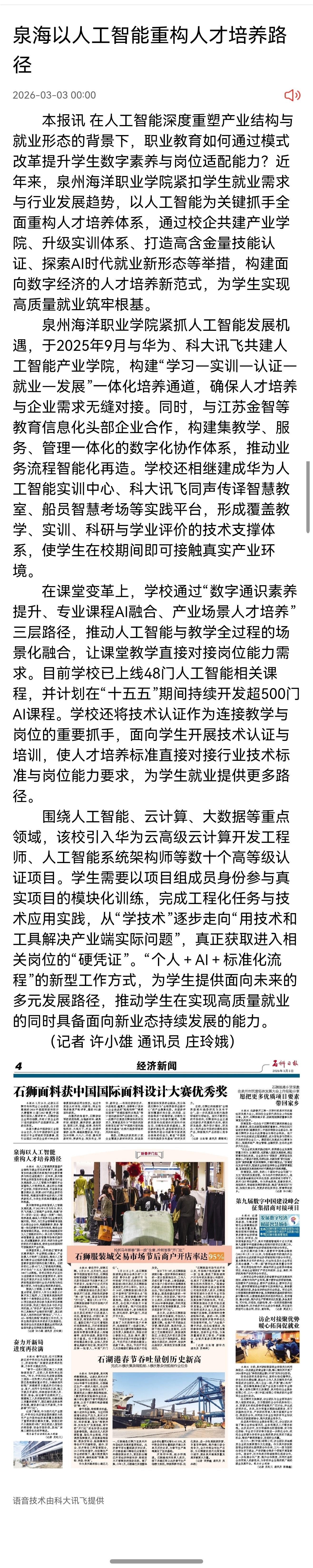 【石狮日报】泉海以人工智能重构人才培养路径