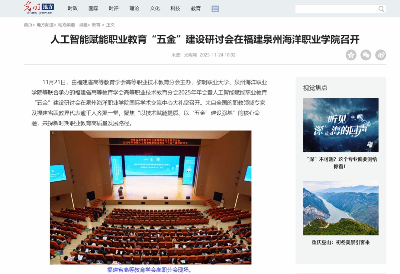 【光明网】人工智能赋能职业教育“五金”建设研讨会在福建泉州海洋职业学院召开