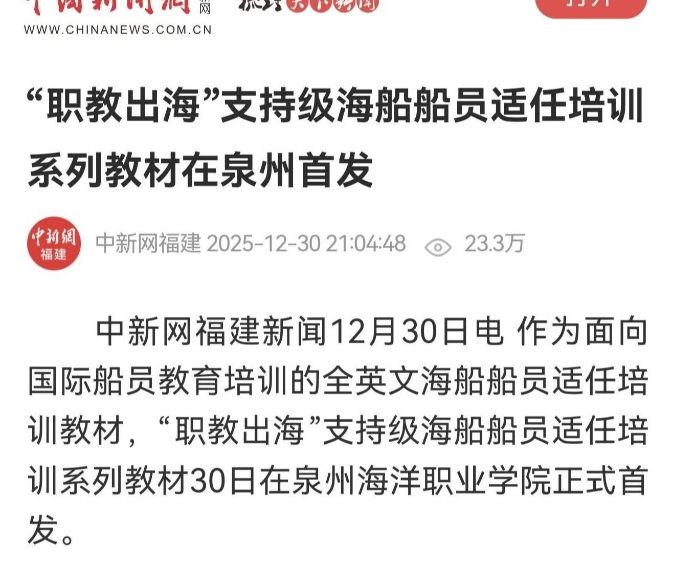 【新华网】职教出海再结硕果 泉州海洋职业学院推出全英文国际船员适任培训教材
