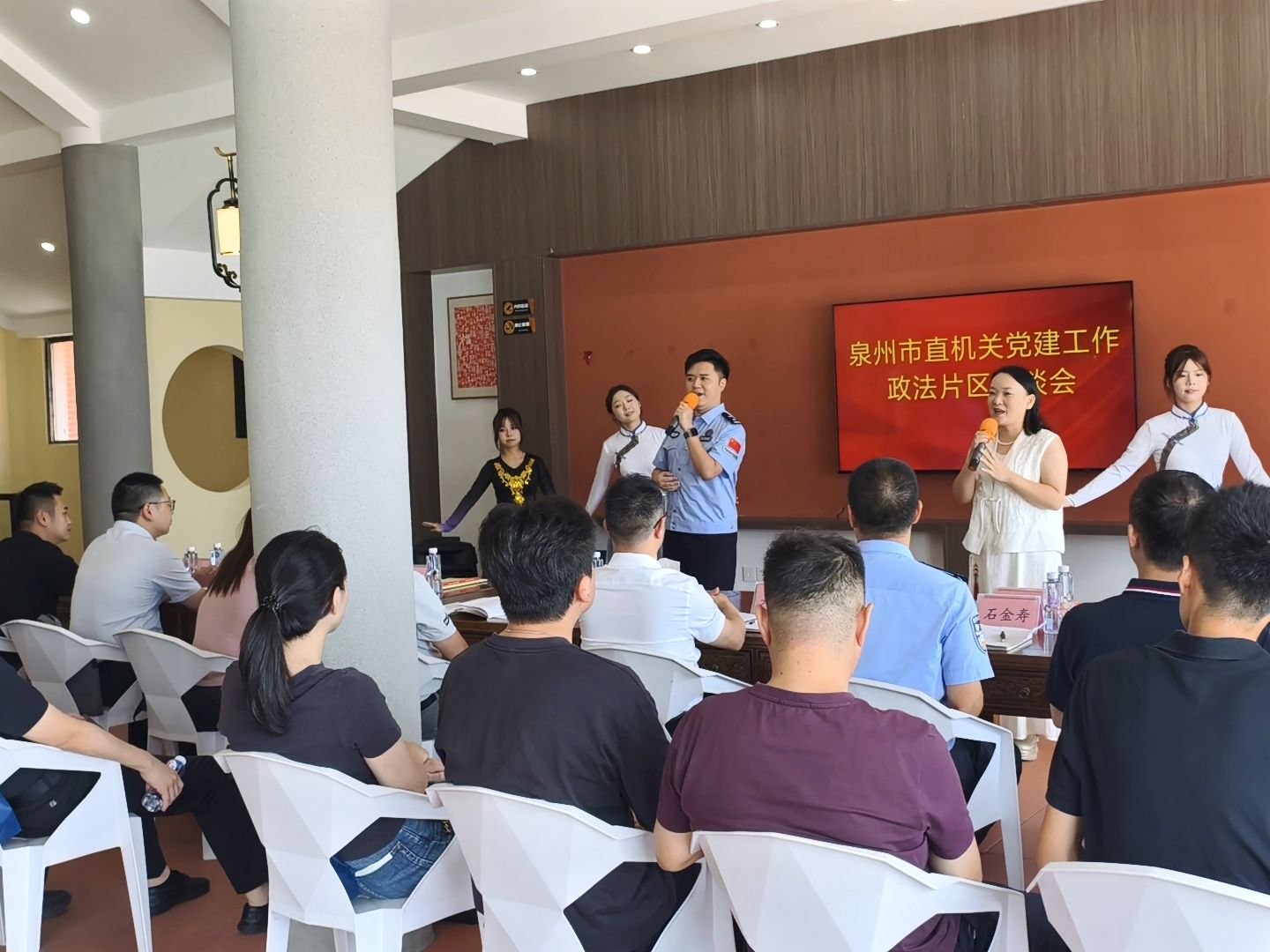 (新闻中心讯 健康休闲学院供稿 党委宣传部报道)10月17日,泉州市直机关党建工作政法片区座谈会在泉州边检站石湖执勤点召开。健康休闲学院教师刘顺、赵静及部分学生代表受邀参与活动文艺演出,表演受到与会人员的欢迎,展现出学院师生良好的艺术素养。本次活动以“强化党建引领,激发队伍活力”为主题,旨在通过多种形式丰富组织生活,提升政法队伍的凝聚力和建设水平。作为活动环节之一,学院师生的歌舞节目为座谈会增添了文化氛围。...