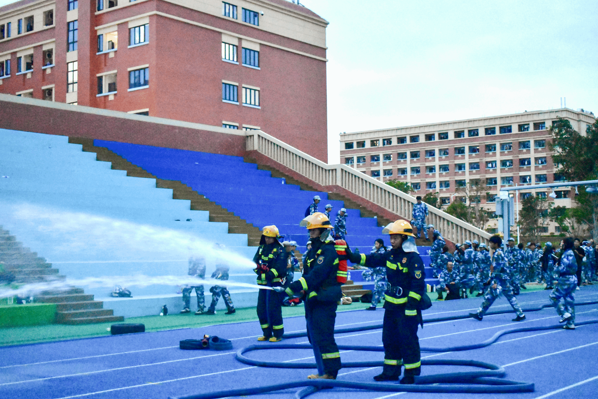 (新闻中心讯 党委学工部供稿 党委宣传部报道)为进一步提升新生消防安全意识与应急避险能力,将安全教育融入军训育人全过程,10月20日下午,我校党委保卫部、党委学工部联合鸿山消防救援站组织2025级新生开展消防应急疏散演练。演练以“模拟实战、以练促防”为原则,在智慧操场操场看台与15号学生公寓两大场景同步推进,为新生上好“开学安全第一课”。随着演练总指挥一声令下,消防应急警报在校园内响起,在智慧操场看台的同学开始场景模拟。...