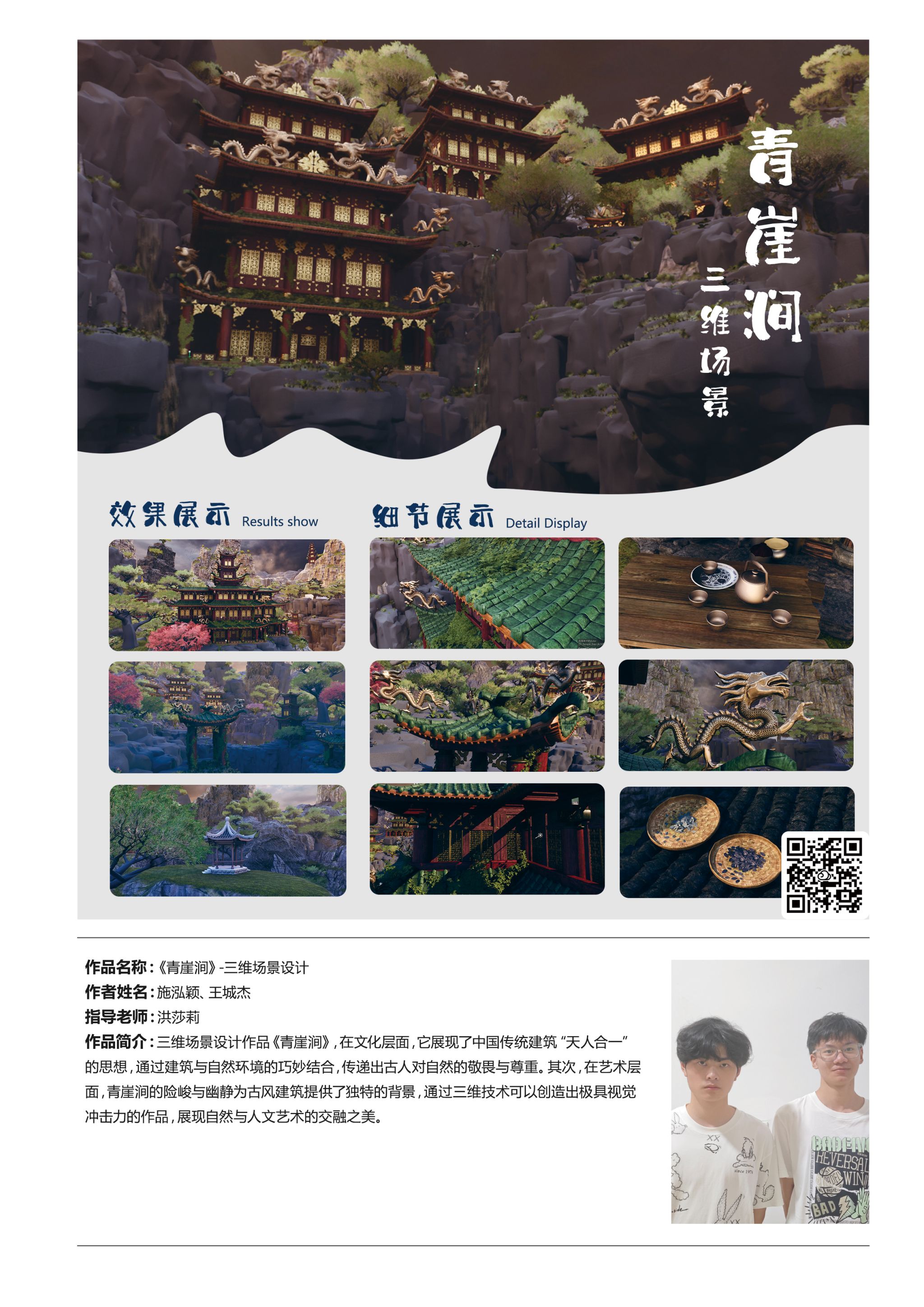 本次“艺向未来”毕业设计展,是信息工程学院“信息科技与创意设计”交叉培养成果的集中呈现。学子们立足非遗传承、民俗文化、科技元素等多元领域,探索从二维到三维的创作维度,历经草图构思、技术实现到成品落地的全过程。每一件作品不仅镌刻着挑灯夜战的坚持与灵感迸发的瞬间,更以创新视角回应时代命题——通过三维虚拟技术唤醒文化遗产的新生命,依托空间渲染技术重构沉浸式体验,借助数字工具讲述中国故事,最终熔铸成艺术与科技交融的核心基因。