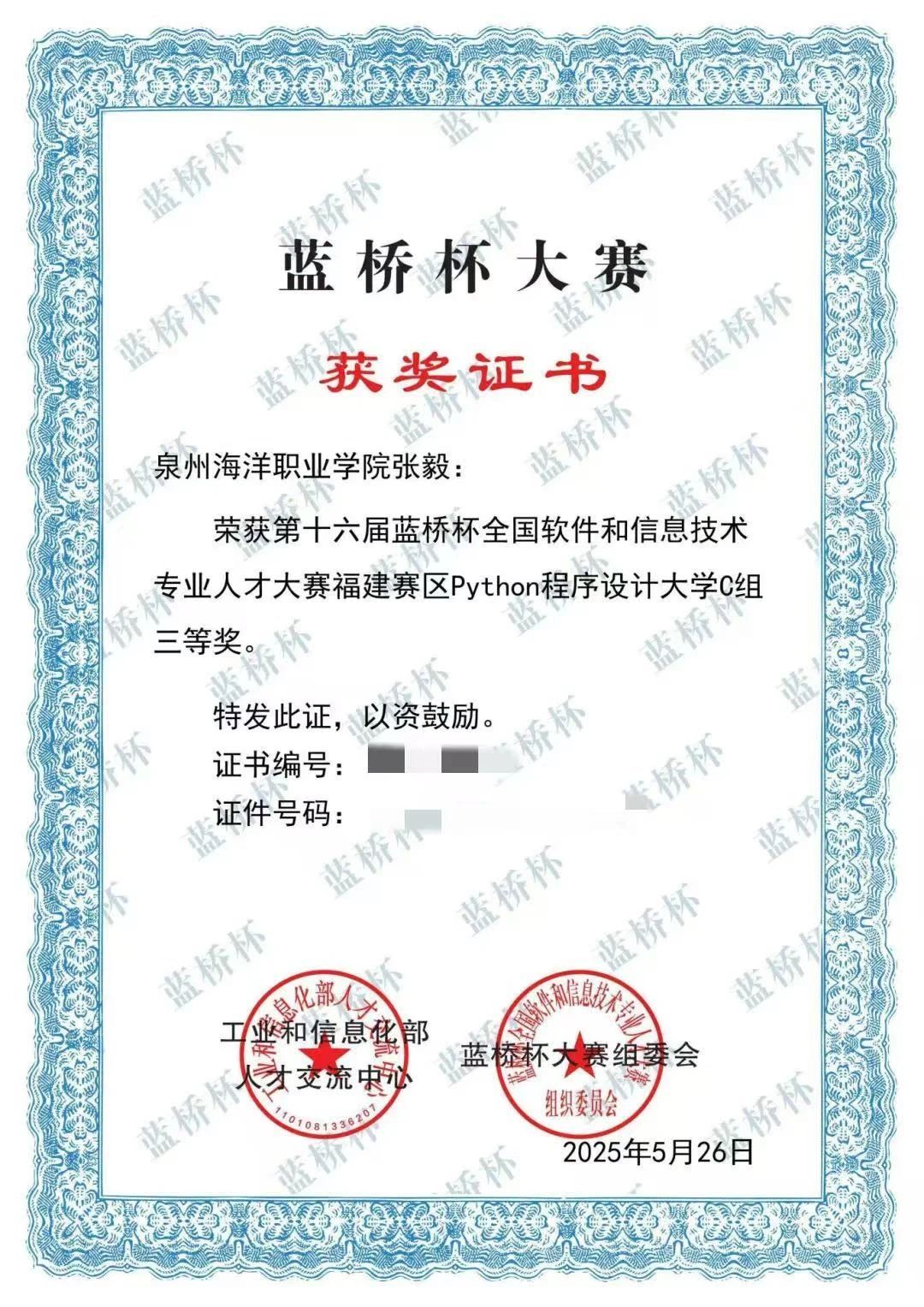 近日,由工业和信息化部人才交流中心主办的第十六届“蓝桥杯”全国软件和信息技术专业人才大赛落下帷幕。信息工程学院学子在省赛中表现突出,斩获国家级三等奖1项、优秀奖1项,省级一等奖2项、二等奖9项、三等奖25项,充分展现了学院扎实的专业人才培养水平和实践创新能力。