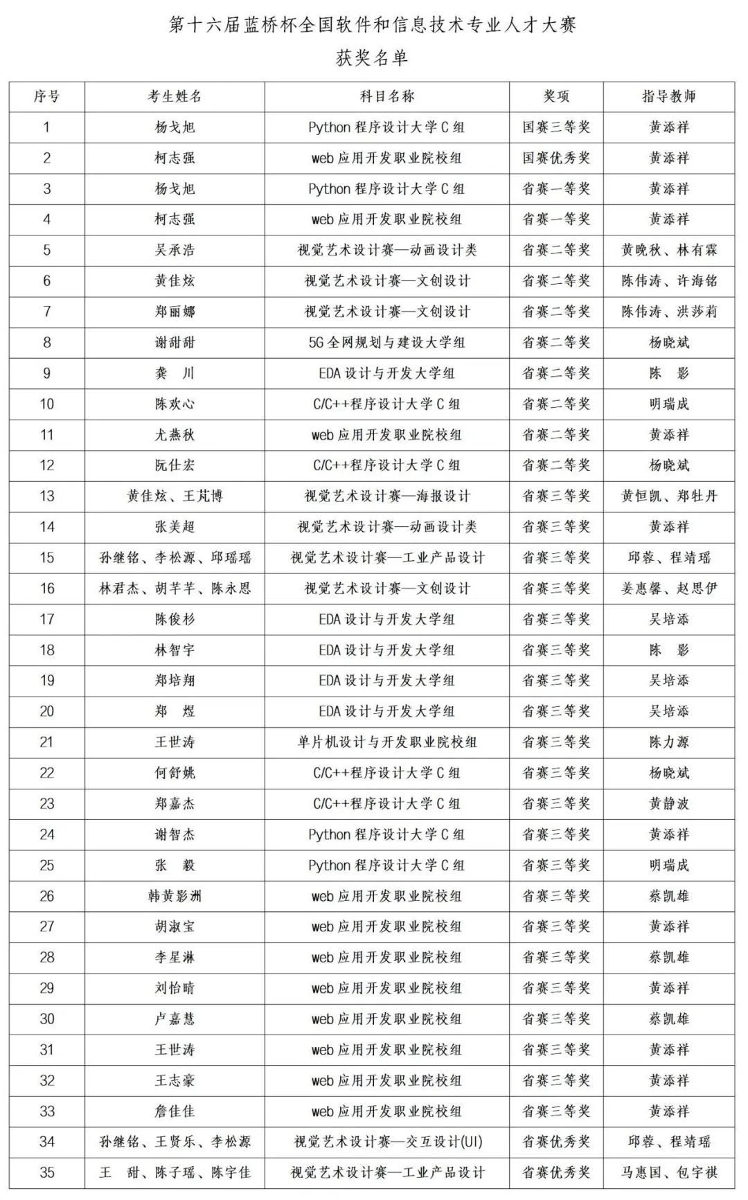作为泉州地区首个承办蓝桥杯赛事的高职院校,信息工程学院自2024年10月起,便启动了蓝桥杯赛事组织及学生报名工作,共组织60余名同学参加软件和电子类个人赛,14支队伍报名设计类团队赛。并积极组织学生备赛,通过线上线下相结合的培训模式,为学生提供系统性培训和技术指导,为竞赛成绩奠定坚实基础。