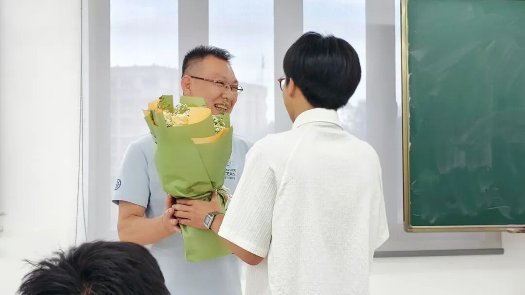现场,学生代表们依次向在场教师敬献鲜花。接过鲜花的瞬间,老师们脸上绽放欣慰的笑容。师生间的真挚情谊在现场静静流淌,以无声却深刻的方式,诠释并传递着尊师重教的价值内涵与精神力量。整个会场始终洋溢着融洽而庄重的氛围,尽显师生情谊的深厚与动人。
