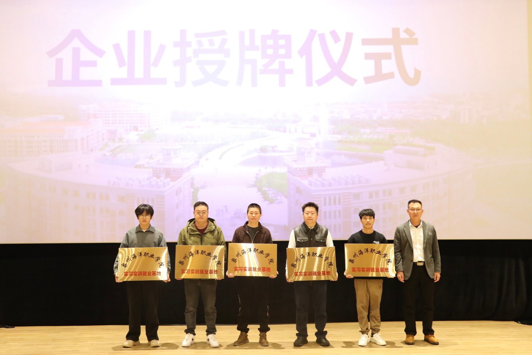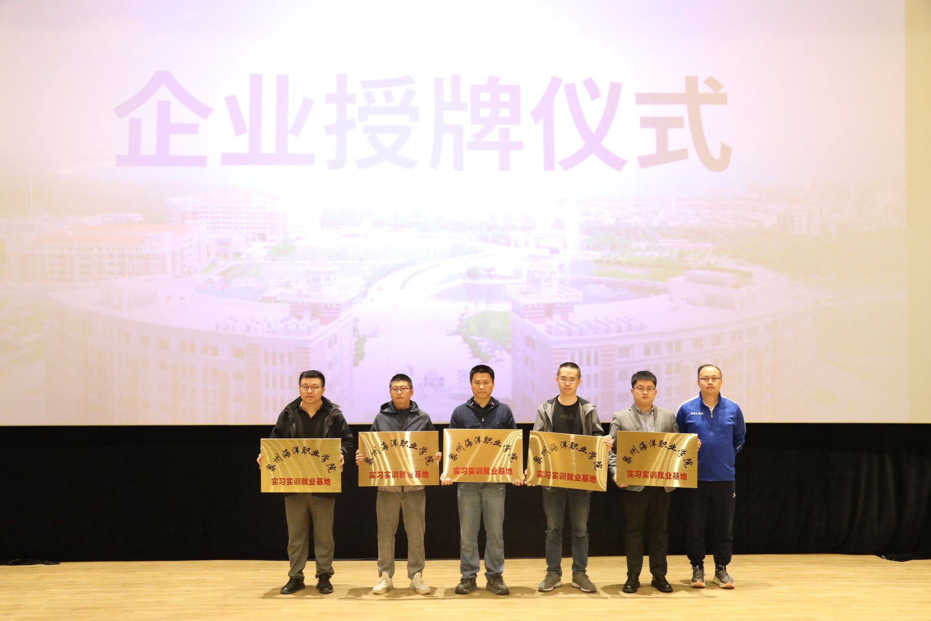 信息工程学院院长贾超、党总支书记陈合喜、对外合作处副处长蒋滨滨、对外中心主任郑天明为福建福莱航空科技有限公司、鸿官通信工程有限公司、厦门以来科技有限公司等22家合作企业授予“泉州海洋职业学院实习实训就业基地”牌匾,为信息工程学院学子提供更广阔、更专业的实践平台,打通从理论学习到岗位实战的“最后一公里”。