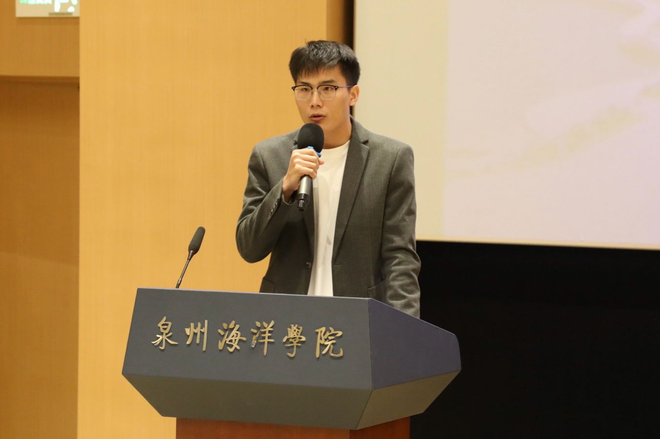 校友企业瀚海(福建)科技有限公司负责人吴华焕作为企业代表发言。他结合自身从求职到创业的成长经历,勉励在校学子:一要扎实掌握专业知识,积极拓展兴趣领域;二要在面对就业压力时坚守初心,专注投身于具有正向价值的事业。他充分肯定校企合作的重要意义,表示将积极提供产业资源与实践机会,作为学弟学妹成长路上的“加油站”。